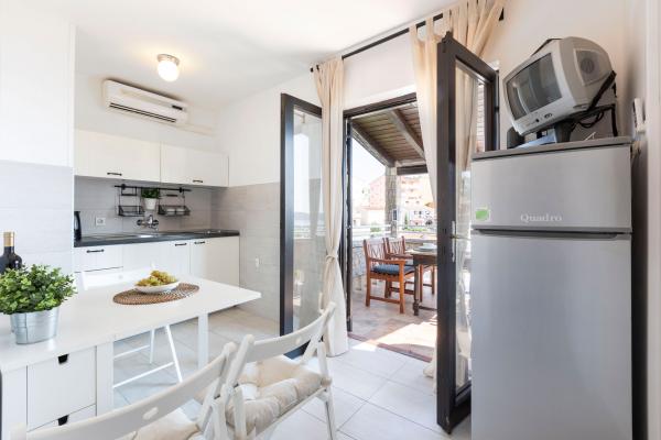 Casa în sine este fantastică. Piatra inconjurata de masline, dafin, smochine si flori. Are un colt cu gratar, in timp ce pana si puii se ascund in fundul casei. Apartamentul are o priveliste minunata si tot ce ai nevoie pentru o vacanta placuta. Gazdă prietenoasă. Cel mai rapid mod de a ajunge la plajă este prin scări. Două sau trei minute și ești pe plajă. Este puțin mai în sus. Întotdeauna există un colț la umbră pe plajă. În apropiere se află o brutărie și o mică piață. Ne-am distrat de minune în vacanță.