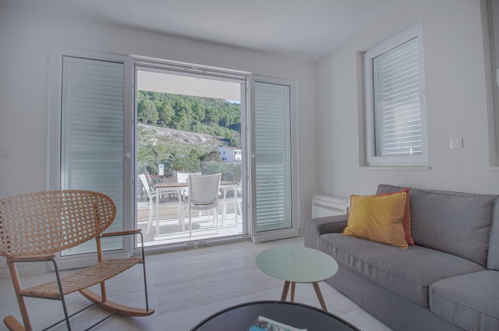 Apartamente mobilate modern, la aproximativ 70 de metri de mare, aproape de toate facilitățile importante. Sunt situate în al doilea rând de la mare, pe o stradă liniștită. Plaja principală este la un minut de mers pe jos, unde există restaurante și magazine. Feribotul spre Hvar pleacă din Donja Vale, iar debarcaderul său se află la aproximativ 200 de metri de apartament.
