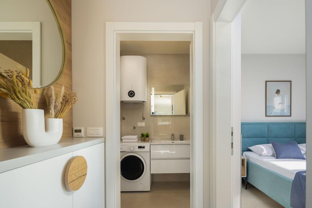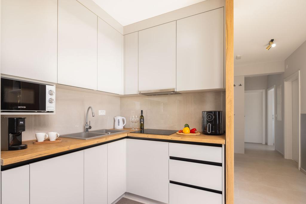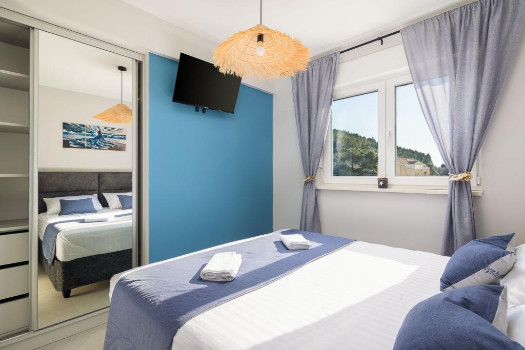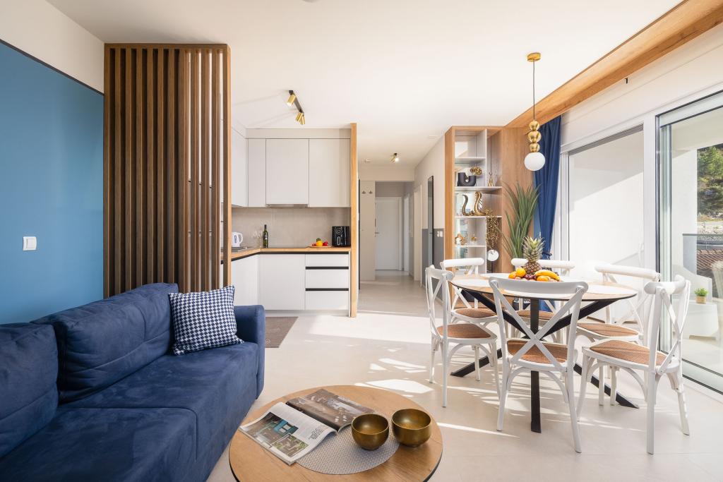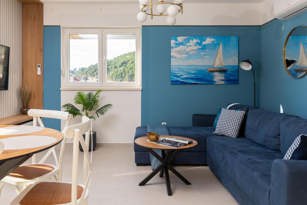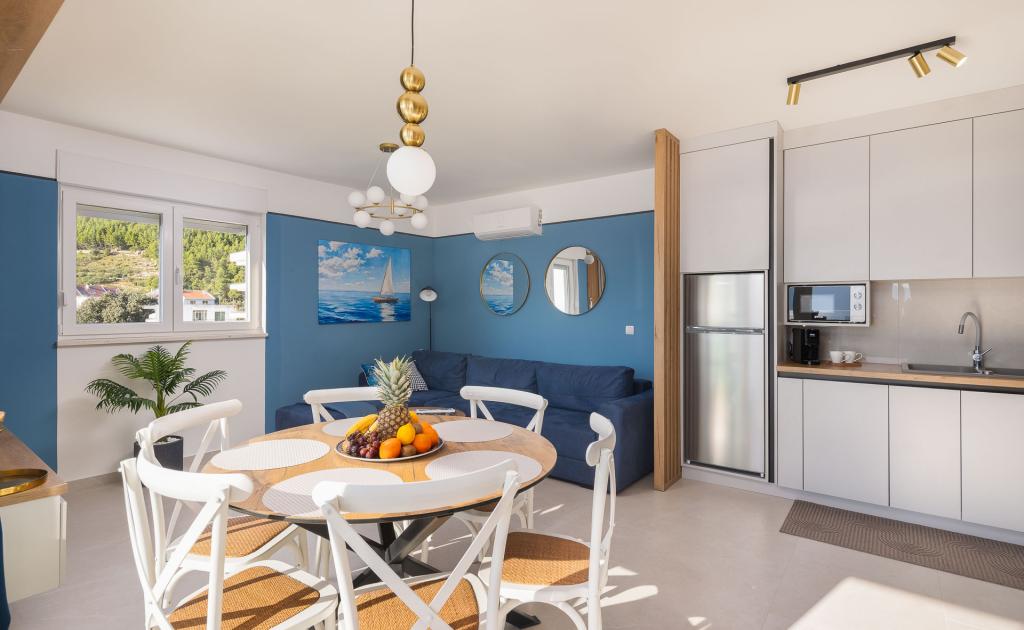 Apartamentul Zina este situat la doar 150 de metri de plaja din Drvenik și oferă cazare modernă și confortabilă, cu o vedere frumoasă la mare. Este ideal pentru familii sau grupuri mici care caută o vacanță relaxantă la mare. Apartamentul are două dormitoare, o baie cu toaletă suplimentară și un living cu o canapea extensibilă. Oaspeții se pot bucura de un balcon spațios cu vedere la mare, precum și de facilități precum o mașină de spălat și un loc de parcare privat în garaj. Personalul nostru vă stă la dispoziție pe tot parcursul sejurului pentru a vă face vacanța plăcută și lipsită de griji.