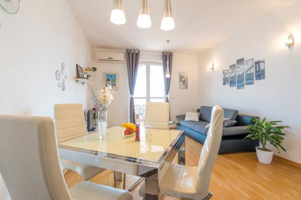 Apartamentul este situat în apropiere de portul de Gruz și un terminal de pasageri si este 100 m de statia de autobuz. Acesta dispune de parcare privată. Apartament mobilat modern, într-o clădire rezidențială, situat în satul Gruz, la 4 km de partea veche din Dubrovnik. Balconul oferă o vedere frumoasă a golfului Gruz. Apartamentul este de 45 m2, cu aer condiționat, are un al doilea televizor plat, televiziune prin satelit și internet wireless gratuit. Acesta constă dintr-un living, sala de mese, bucatarie complet utilata (aragaz, cuptor, masina de spalat vase, frigider, congelator, vesela, condimente, ceainic, toaster) și baie cu duș (există o mașină de spălat și un uscător de păr) și camere ( are o suprafață de fier și o placă). Canapea Bine ați venit la frumoasa Dubrovnik!