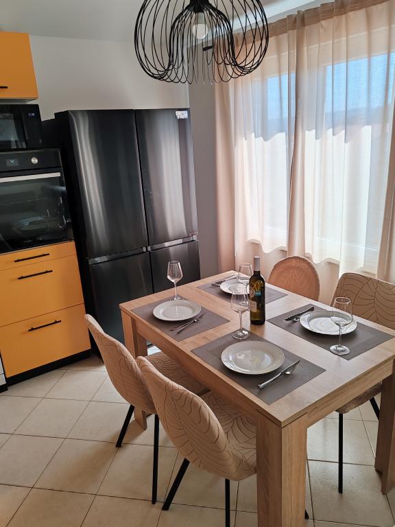 Apartamentele sunt situate într-o zonă liniștită Duce, al doilea rând de la magistrale.Moderno mobilat si utilat cu tot ce este necesar pentru odmor.Posebno perfectă potrivite pentru familiile cu copii din cauza la terasa spațioasă și apropierea de plajă (nu este nevoie să traverseze drumul). Facilitatea este situat la 15 de minute. mers pe jos de centrul orașului și la 2 minute de mers pe jos de plaže.Mogućnost de a închiria bărci, jet-ski, organizarea de excursii și o mulțime de alte forme de divertisment.