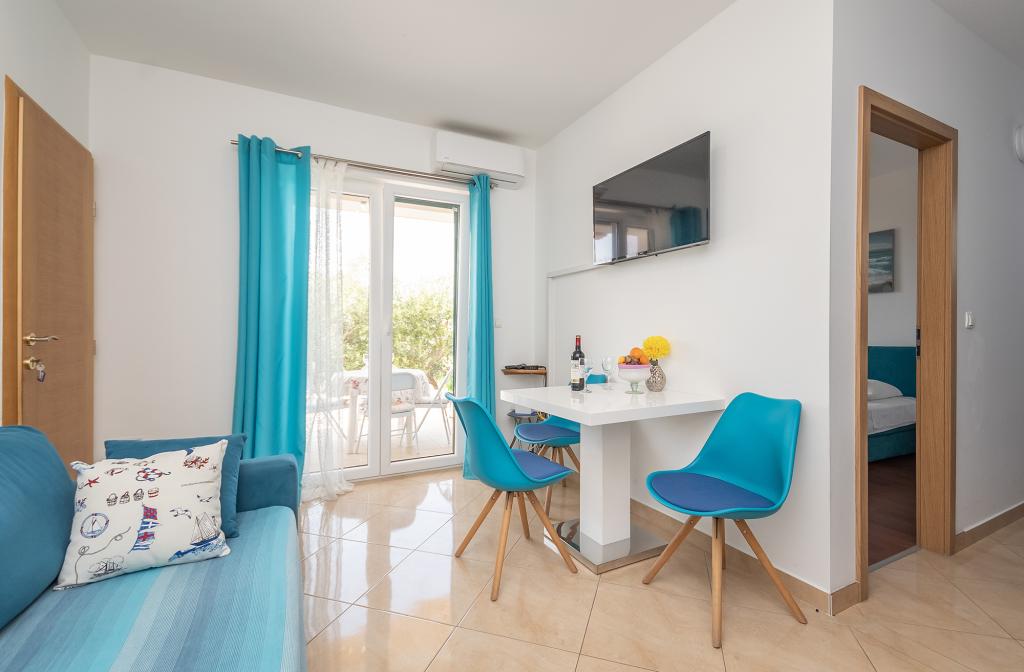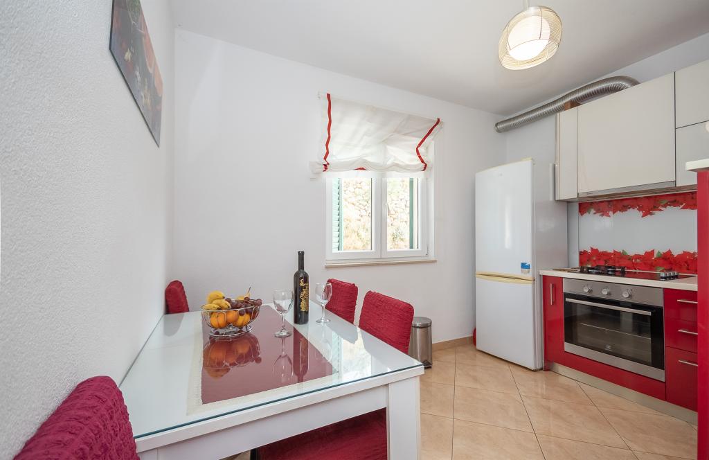 Apartments Rejo este situat în micul oraș Dugi Rat, pe Riviera Omișului, într-un mediu liniștit, cu vederi panoramice superbe la mare și insula Brac. Din centrul localității se află aproximativ 400 de metri distanță, iar toate facilitățile turistice sunt situate în bizini. Avem 2 apartamente de închiriat. Fiecare apartament este potrivit pentru un maxim de 4 persoane, cel mai potrivit pentru 2 adulți și 2 copii. Ambele apartamente sunt situate la primul etaj. Fiecare apartament are 1 dormitor cu un pat dublu mare, un living cu o canapea extensibilă pentru 2 persoane, o bucătărie, o baie, un balcon cu vedere la mare și o terasă în partea de nord a casei.