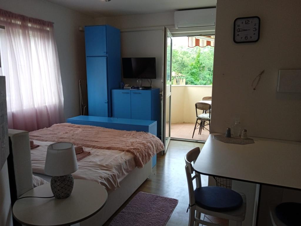 Garsoniera decorata modern este situata in apropiere de mare (350 m), Plodina (20 m) si statie de autobuz (300 m). Este la 5 km de Pula. Apartamentul are un balcon de 7 mp cu vedere la verdeata. Este dotata cu aer conditionat, televizor, aragaz cu inductie, electric si cuptor cu microunde, aragaz, masina de spalat si are acces la internet.