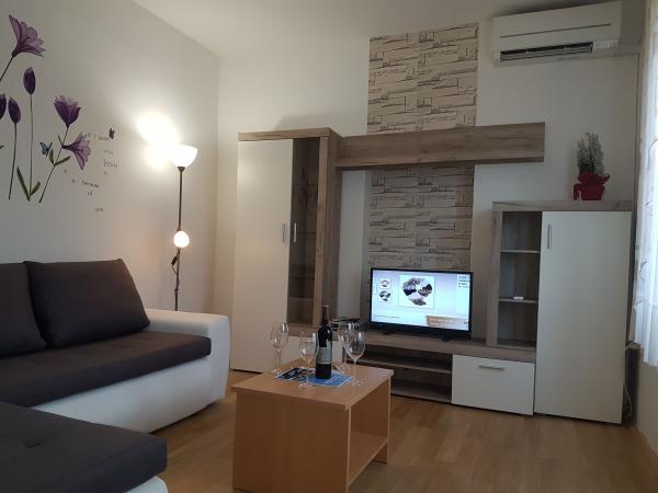Apartments Mihatović Fažana este situat în Fazana (regiunea Istra). În sezonul 2018 va oferim o piscină cu jacuzzi banc 5x3 al 7-lea. 5 metri secțiunea 2x2 metri pentru copii. Se compune din 4 apartamente: Apartament pentru 8 persoane cu 3 dormitoare 2 paturi suplimentare Apartament pentru 4 persoane, cu 1 dormitor și 2 paturi suplimentare, Apartament pentru 8 persoane cu 3 dormitoare 2 paturi suplimentare Apartament pentru 6 persoane cu 2 dormitoare cameră cu 2 paturi suplimentare. Apartamente Mihatović Fažana departe de centrul de 300m și este la 300m de la plajă. Conținut: SAT / TV, aer condiționat, internet WiFi, fumatul permis, animale de companie, etc.