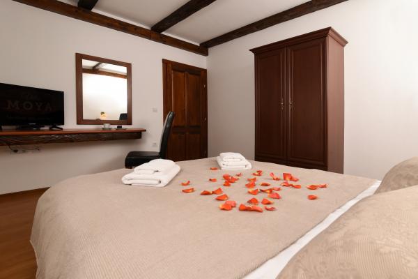 Apartament de construcție \ Villa MOYA \, situat deasupra Bajer lac cu o vedere unică a lacului și a munților este format din șase apartamente, fiecare pentru două persoane și două paturi suplimentare. Apartamentele sunt compuse din unul sau doua dormitoare, baie, hol, living mare cu bucătărie complet utilată, un balcon, acces Wi-Fi gratuit, TV prin satelit, parcare. Apartamentele sunt mobilate în culori pământii calde, mobilier lucrat manual și materiale naturale, tot ce ai nevoie pentru o vacanță de neuitat. Clădirea Vila MOYA la parter are spațiu pentru socializare sau de joc, bibliotecă, vatră, bazin, terasă mare cu șezlonguri, spa cu jacuzzi, saună și sală fitness. Putem găzdui 2-20 persoane. \ Villa Moya \ situat într-o locație minunată în inima Gorski Kotar, deasupra lacului Bajer, la 700 m de centrul Fu, unitate de 25min la coasta Adriaticii și plajă, 30min din orașul Rijeka și 1 oră de la Zagreb. Bine ai venit!