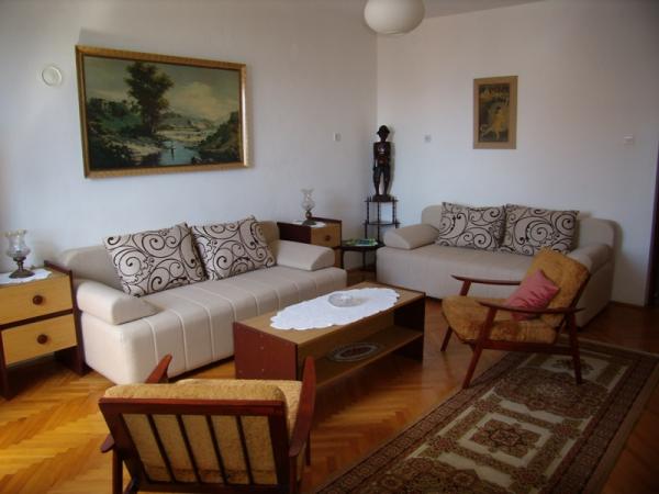 complet mobilat apartament situat la primul etaj al casei și are o intrare separată. orientata spre sud, și toate trei au balcoane cu vedere la mare și fiecare balcon are un set de mobilier. Spațiul interior de 100 m2, are două dormitoare, living, sala de mese, bucatarie, doua bai complete și o toaletă separată. Toate cele 3 camere au aer condiționat și TV / SAT. Loc de parcare este la umbră în curtea împrejmuită. Apartamentul este situat la 5 minute de mers pe jos de plajă, în special între apartamente și plajă este doar un hotel. Pretul include: taxa de statiune, WiFi, TV / SAT, lenjerie, prosoape (2 per persoană, schimbat la fiecare 5 zile), toate cele 3 climatice (dacă este utilizat exclusiv în timp ce stau in camera), la două locuri de parcare, gratar si curatenie. Aproape de apartament, la 5 minute de mers pe jos se găsesc restaurante, baruri, terenuri de tenis și magazine. Centrul orașului se află la 10 minute de mers.