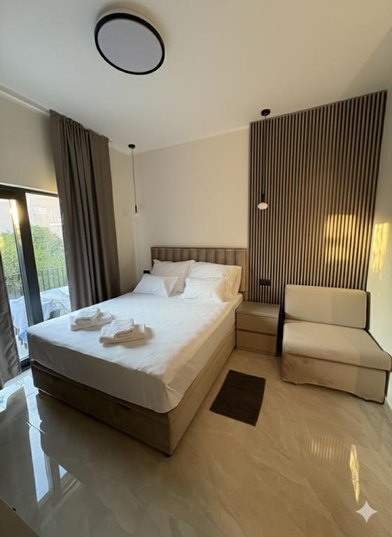 Bucurați-vă de luxul apartamentelor noastre complet renovate, decorate la standarde de 4 stele. Situate într-o zonă liniștită a orașului, acestea oferă o vacanță perfectă, fără zgomot, și se află la doar câteva minute de mers pe jos de cele mai frumoase plaje, restaurante și cafenele. Ce oferim: Facilități de top: Interioare moderne, aer condiționat, internet de mare viteză și TV cu o gamă largă de canale. • Curățenie și eleganță: Nivel ridicat de igienă și design atent selectat pentru confortul dumneavoastră maxim. • Parcare privată: În cadrul unității este asigurat un loc sigur pentru vehiculul dumneavoastră. • Ospitalitate: Suntem întotdeauna la dispoziția dumneavoastră pentru a vă recomanda cele mai bune restaurante, excursii și atracții locale. Note: Fumatul și animalele de companie nu sunt permise în unitate, păstrând astfel prospețimea și calitatea spațiului pentru toți oaspeții noștri. Experimentați vacanța perfectă în eleganță și liniște. Bine ați venit!
