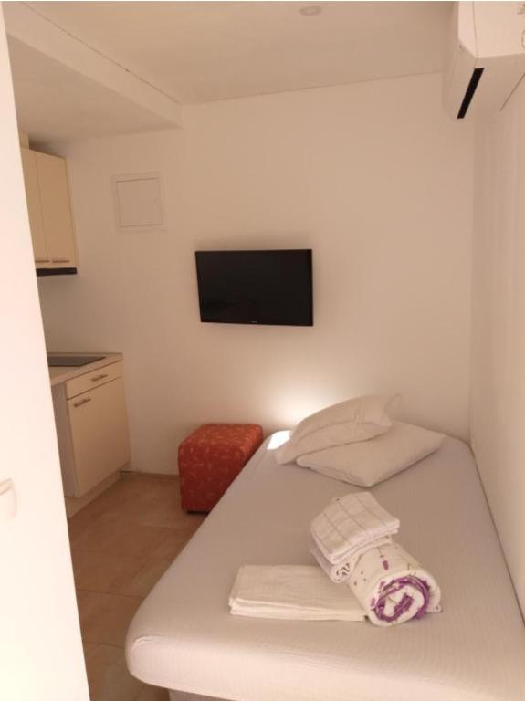 Apartamentele Kolumbo Bucurați-vă de șederea dumneavoastră la Apartamentele Kolumbo, situate ideal, la doar un minut de mers pe jos de frumoasa plajă cu pietriș, piața principală, pizzerii și cafenele. Proprietatea oferă trei unități de cazare. Toate unitățile sunt dotate identic și includ: Aer condiționat și Wi-Fi gratuit. TV prin satelit. Baie privată. Bucătărie utilată cu plită, cuptor cu microunde, fierbător și frigider. Dispunerea unității de cazare: Parter: Două apartamente cu acces facil. Etaj: Apartament cu terasă și vedere la mare. Parcarea este asigurată pentru toți oaspeții. Beneficiu exclusiv în restaurantul nostru: Ca oaspeți ai noștri, beneficiați de o reducere de 10% la prânz și cină în restaurantul nostru de familie, Marina Restaurant. Bucurați-vă de specialități locale proaspete la un preț mai accesibil.