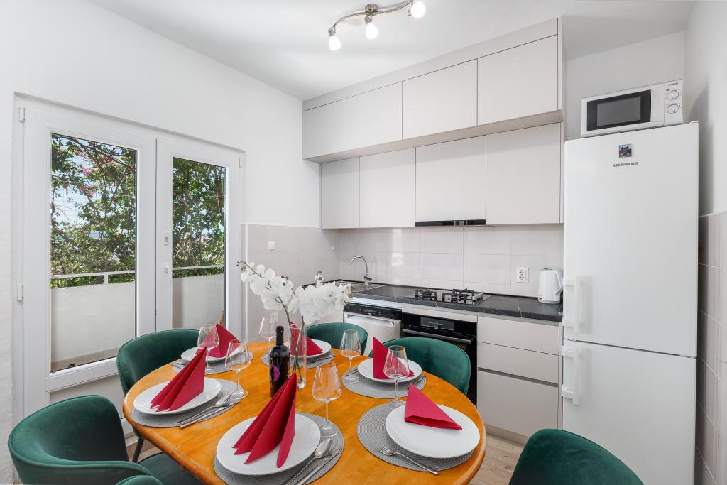 Taxa de rezidenta este inclusa in pret. Document de confirmare a rezervării la rezervareAm petrecut o vacanță grozavă în apartamentul A8 la cumpăna lunilor iunie și iulie 2022. Până la plajă câțiva pași, unde te puteai bucura de marea limpede, fără arici de mare și poluare. Promenada este ideală pentru plimbări, aproape de o brutărie, restaurant, gelaterie etc. în spatele parcării, la vreo 300 de metri, o altă plajă frumoasă, cu un loc umbrit într-o pădure de pini. Un apartament confortabil, dotat cu ustensilele necesare pentru a facilita funcționarea (mașină de spălat, frigider suplimentar, cuptor cu microunde). Singurul dezavantaj a fost ieșirea directă în stradă (trebuie să fii atent, mai ales să faci copiii sensibili să iasă afară). Un loc grozav pentru două familii 2 + 2 sau un grup de prieteni. Seara, puteam petrece timp pe terasa, care era dotata cu mese si scaune. Datorită vegetației și acoperișului, practic nu a fost nevoie să folosim aer condiționat. Proprietarul apartamentului ne-a întâmpinat cu vin de casă. Igrane este un punct de plecare excelent, am vizitat insula Hvar, Dubrovnik, Riviera Makarska, etc. Vă mulțumim pentru timpul frumos !!! Dariusz cu prietenii