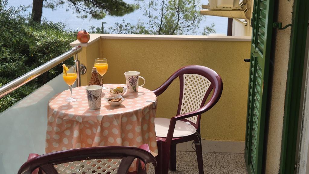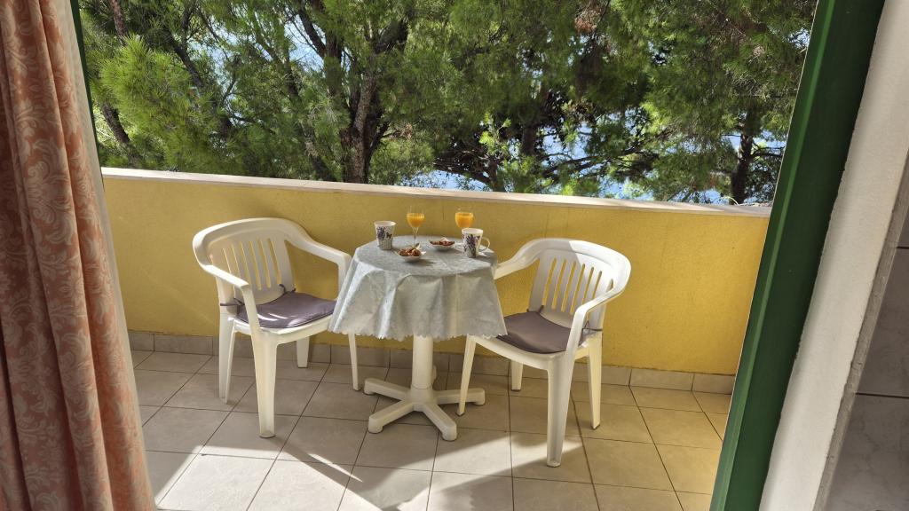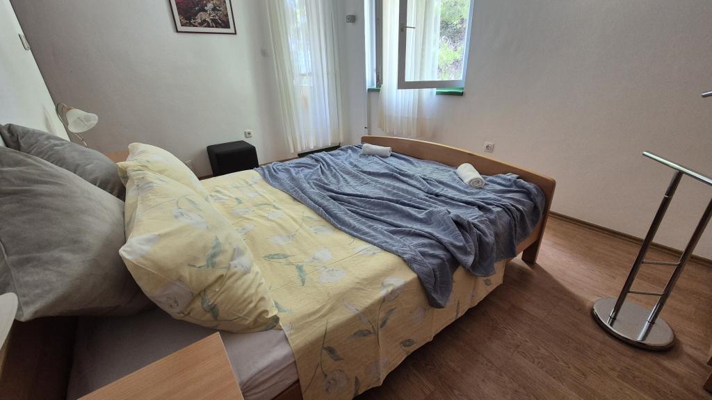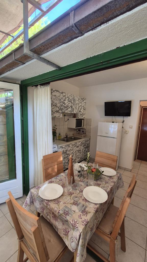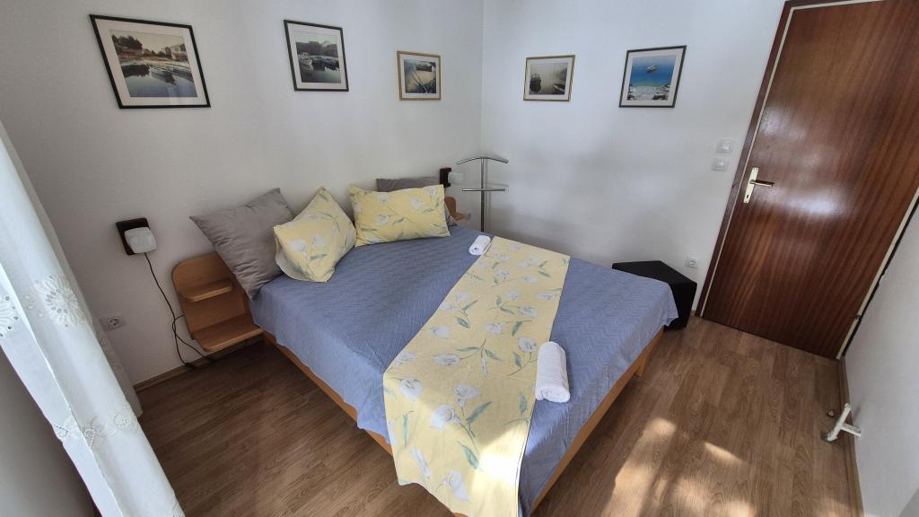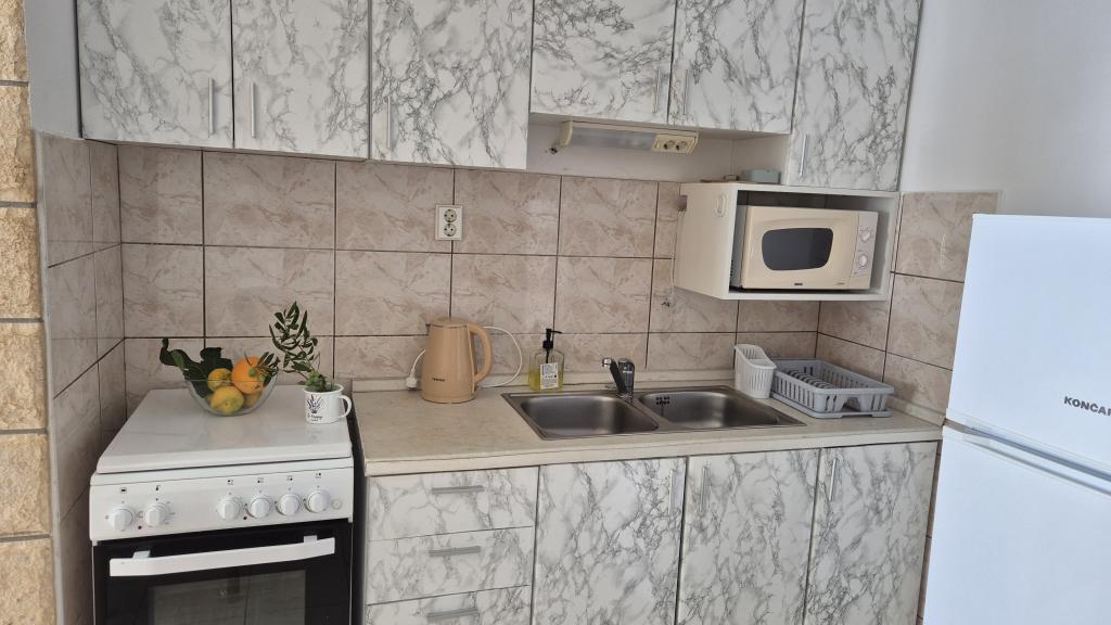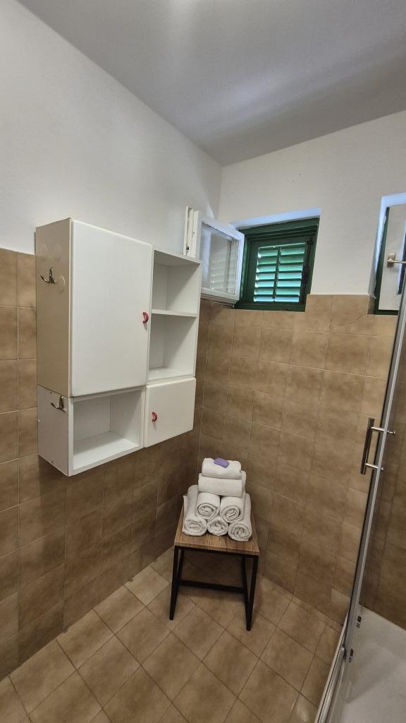 Apartamentele Arpina sunt situate într-o pădure deasă de pini, la primul rând la mare. În imediata apropiere a apartamentului se află mai multe plaje cu pietriș, în timp ce în fața casei se află o plajă de piatră la doar 10 metri. Unitatea de cazare are o curte amenajată cu șezlonguri și mese pentru oaspeți, cu vedere deschisă la mare. Parcarea și utilizarea grătarului sunt disponibile pentru oaspeți, iar la cerere, este disponibilă utilizarea unei mașini de spălat și a unui pătuț. Cazarea este formata dintr-un total de 5 apartamente, cu o capacitate totala de pana la 18 persoane. Toate apartamentele au vedere la mare, sunt dotate cu aer condiționat și bucătărie, iar internetul WI-FI este disponibil în întreaga clădire.