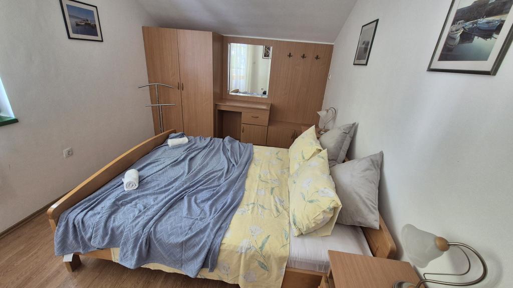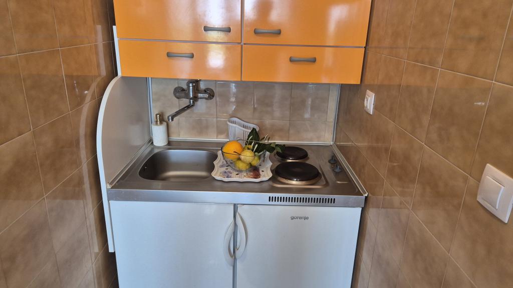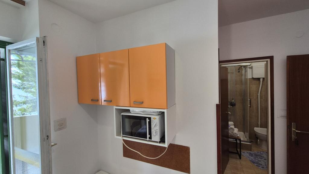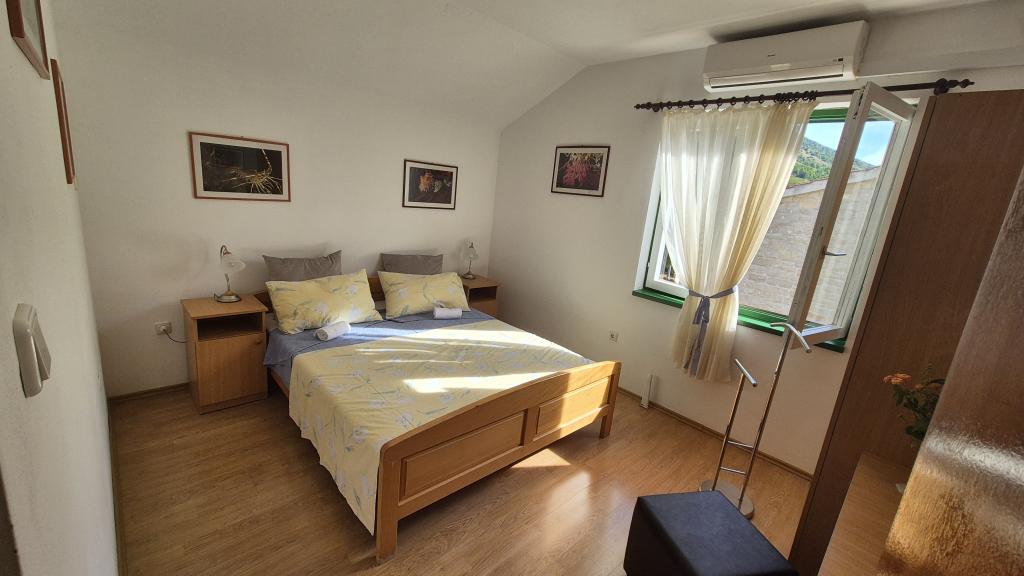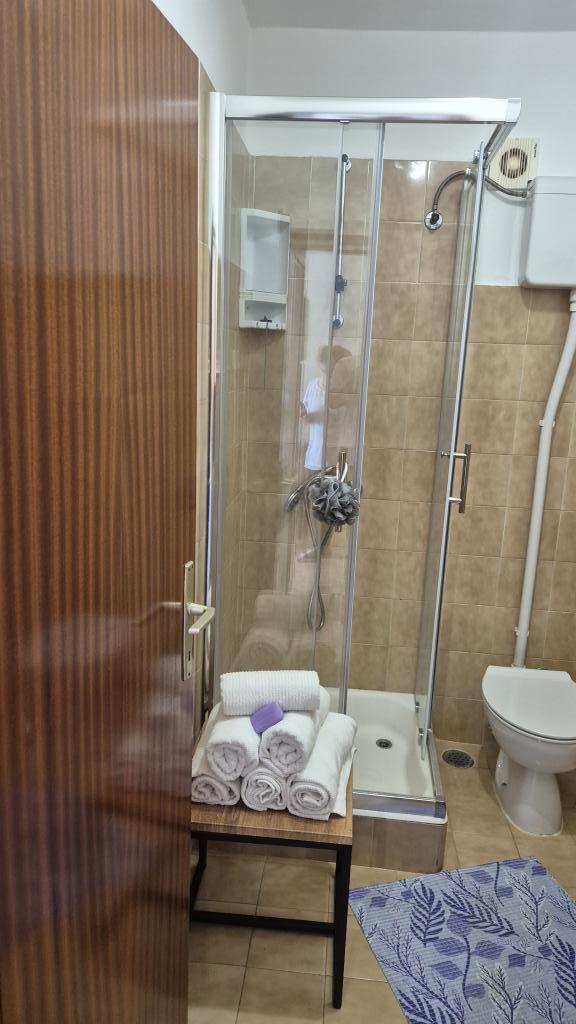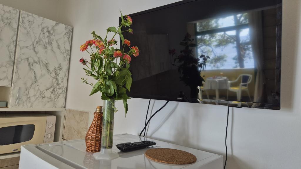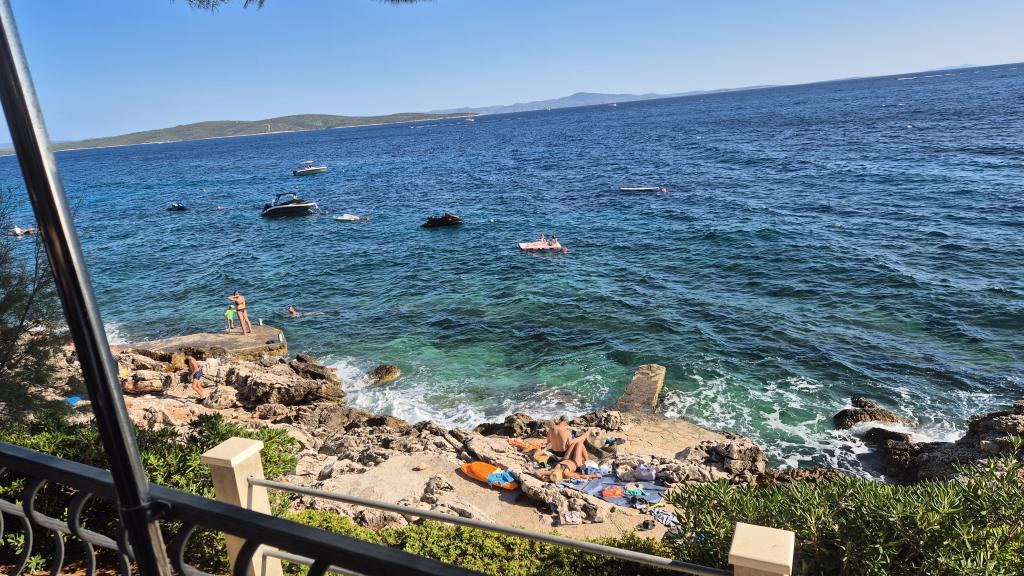 Apartamentele Arpina sunt situate într-o pădure deasă de pini, la primul rând la mare. În imediata apropiere a apartamentului se află mai multe plaje cu pietriș, în timp ce în fața casei se află o plajă de piatră la doar 10 metri. Unitatea de cazare are o curte amenajată cu șezlonguri și mese pentru oaspeți, cu vedere deschisă la mare. Parcarea și utilizarea grătarului sunt disponibile pentru oaspeți, iar la cerere, este disponibilă utilizarea unei mașini de spălat și a unui pătuț. Cazarea este formata dintr-un total de 5 apartamente, cu o capacitate totala de pana la 18 persoane. Toate apartamentele au vedere la mare, sunt dotate cu aer condiționat și bucătărie, iar internetul WI-FI este disponibil în întreaga clădire.