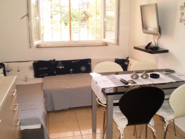 Jadranovo este un oraș turistic situat la nouă kilometri de orașul de Crikvenica. 25 iulie sărbătoarea patronului său, Sf. Apostol Iacov. Situat pe coasta însorită Adriatice la nord, este cunoscut pentru numeroasele sale plaje, golfuri și marea limpede ca cristalul, un fel de fenomen natural și nămol curativ în golful Lokvišće. Bay-Lokvišće a găsit un număr mare de amfore rupt, ceea ce indică existența unui mic port și depozit. Casă de vacanță 1 (43qm) este situat la parter. Se compune dintr-o bucatarie, camera de zi complet utilată și baie. Baia are un bazin de WC, duș și se spală. Zona comună de bucătărie și living, în cazul în care există o canapea extensibilă pentru 2 persoane. dormitor 2 persoane. Apartamentul este cu aer condiționat și dotate cu TV prin satelit, DVD, cuptor cu microunde și uscător de păr. Oaspeții au la dispoziție mobilierul de grădină cu grătar. 2 locuri de parcare. Al doilea apartament este la primul etaj (75m2). Acesta are un balcon
