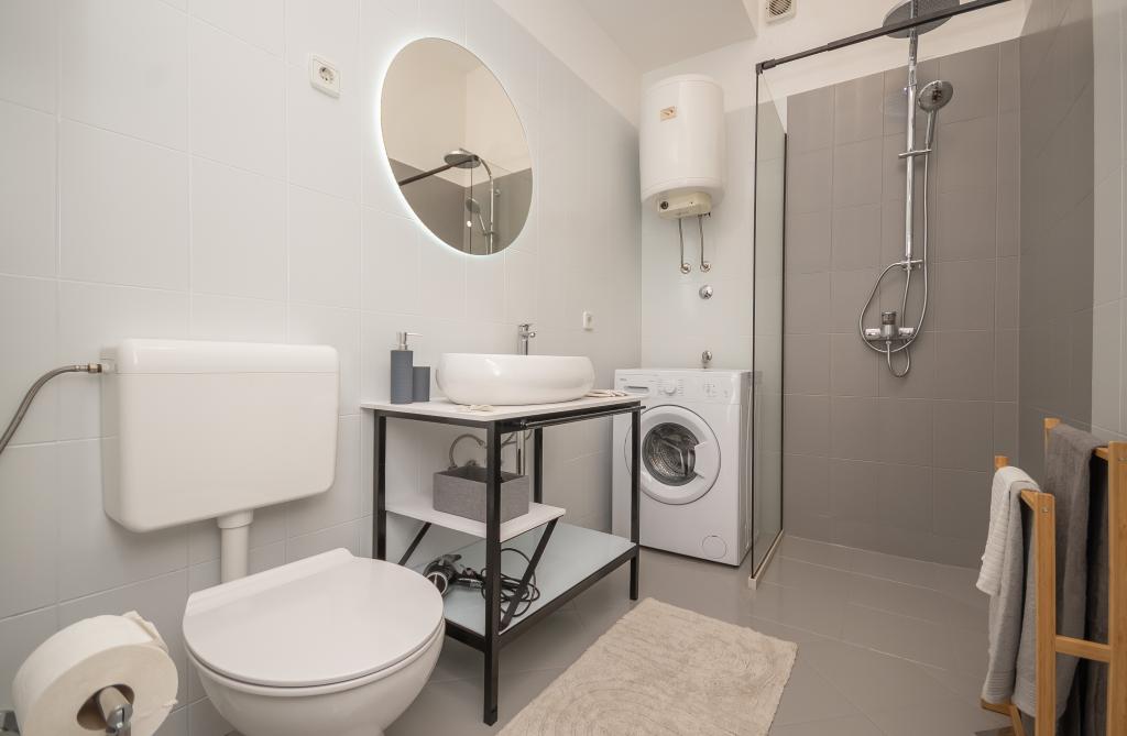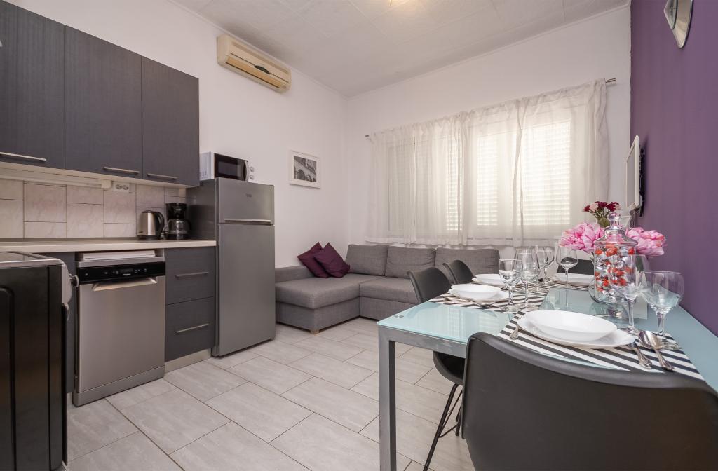 Apartamentul „B” este situat în orășelul Sumpetar Jesenice, nu departe de Split și Omiš. Se află la 20 de pași de plaja cu pietriș. Apartamentul face parte dintr-o casă de familie situată de-a lungul drumului principal care duce spre Dubrovnik. Este format dintr-un dormitor, bucătărie și living, toaletă și balcon comun. Este potrivit pentru 4 persoane. Parcarea și wi-fi-ul sunt gratuite.