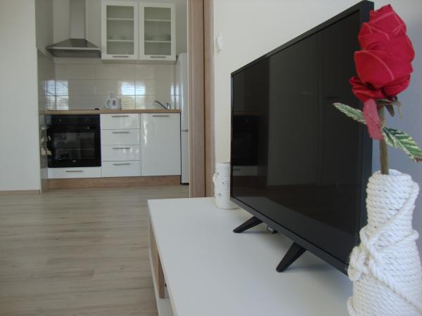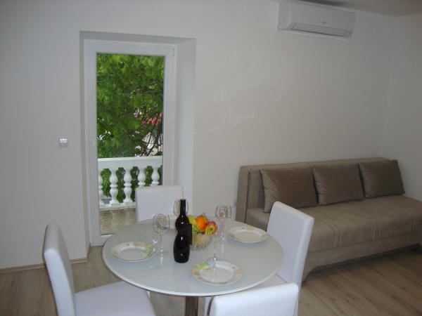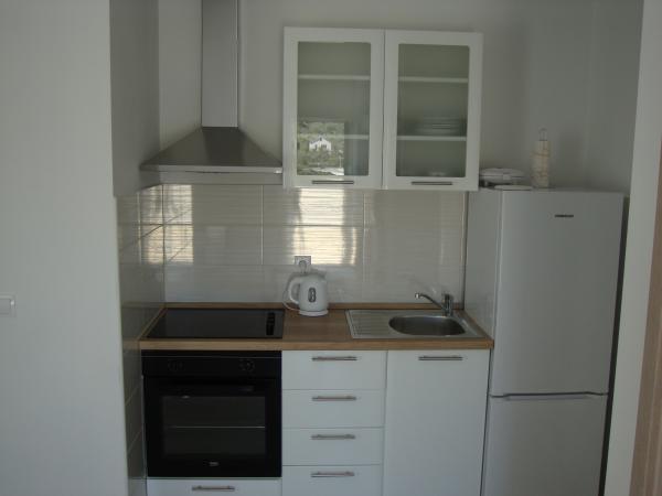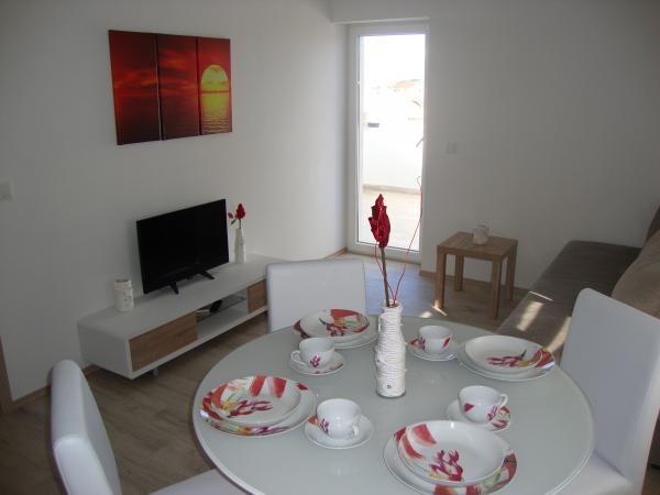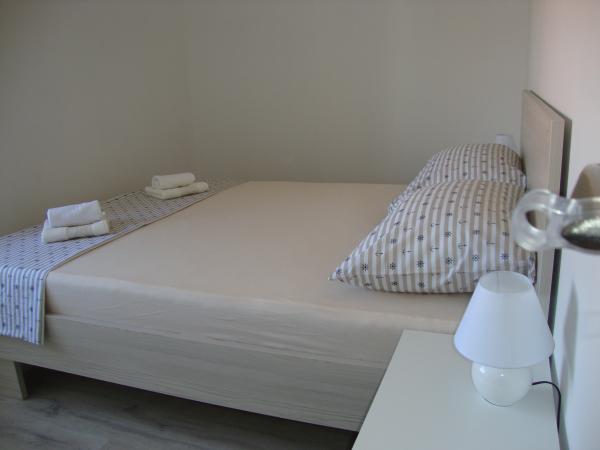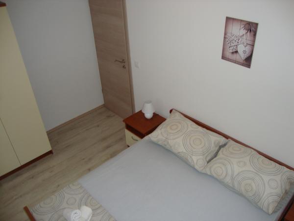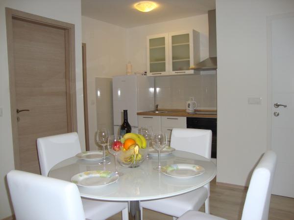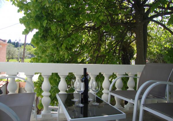 Apartamentele sunt Longin la primul etaj și sunt ideale pentru două familii. Acestea sunt conectate printr-un hol mic, care găzduiește ușa din față a casei. Proprietarii locuiesc la parter, iar terenul din jurul curtea casei, livadă de măslini și șemineu în aer liber, care este la dispoziția oaspeților. etaj apartament are 31 m2 si o terasa de 20 m2, iar apartamentul LEONA dispune de 31 m2 și un balcon de 4 m2. În plus față de casa este un mini-market. Plaja este 300m și 800 m și ambele au de parcare gratuite, dușuri și facilități cu alimente și băuturi. Insula Ugljan este conectat la liniile expres continent la fiecare oră, astfel încât nici Zadar nu este departe. Apartamentele LONGIN sunt situate în satul Kali. Două locuri de parcare gratuite publice mai mici sunt situate la 50m de apartament, în timp ce cu facilitatea de un loc de parcare.
