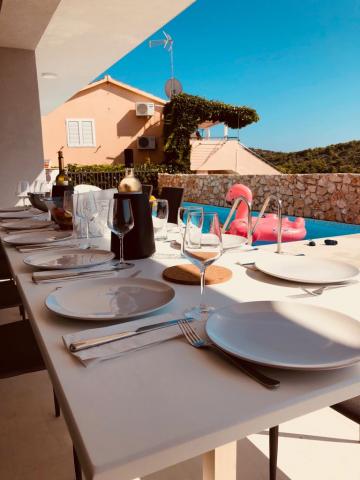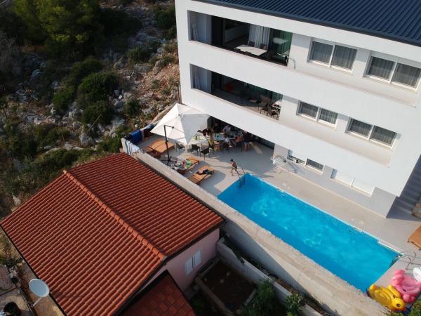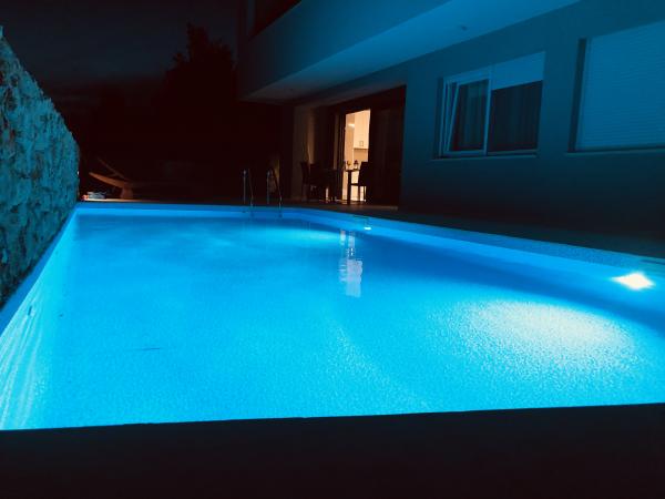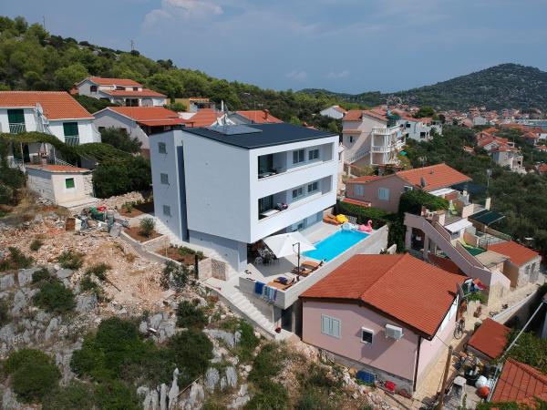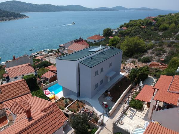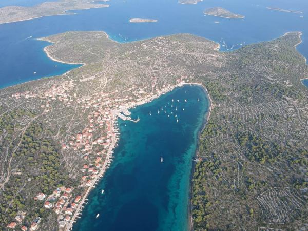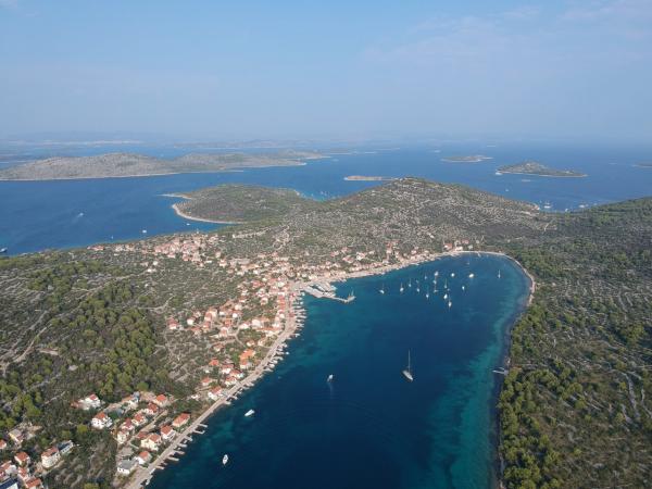 Apartamente de lux într-o vilă nouă, pe insula Kaprije, în arhipelagul Sibenik. Grădina mediteraneană frumoasă, plaja privată se află la 150 de metri de casă. Kaprije este o insulă frumoasă, cu peisaj autentic și un mod de viață în mijlocul Dalmației. Nu există mașini, natura exotică, plaje uimitoare, apusuri de soare magice și nopți liniștite, uimitoare, unde puteți auzi valuri ... Ideal atât pentru o vacanță de familie de neuitat, cât și pentru o vacanță romantică ... Apartamentele au tot ceea ce sunteți obișnuiți într-un mod modern de viață. Mobilierul artizanal, paturile și aparatele de cea mai bună calitate. Două dormitoare de lux cu pat dublu și patru canapele de calitate superioară într-o cameră de zi. Poate găzdui până la 8 persoane. Pături de mătase, perne de bambus, saltele de lavandă ... Două băi cu plimbare în dușuri. Bucătărie complet echipată cu mașină de spălat vase și mașină de spălat ascunsă într-un dulap construit în hol. Toate camerele sunt dotate cu unități AC. WIFI gratuit. Pe apartamentul Rocks are acces exclusiv la piscina de 32m2.