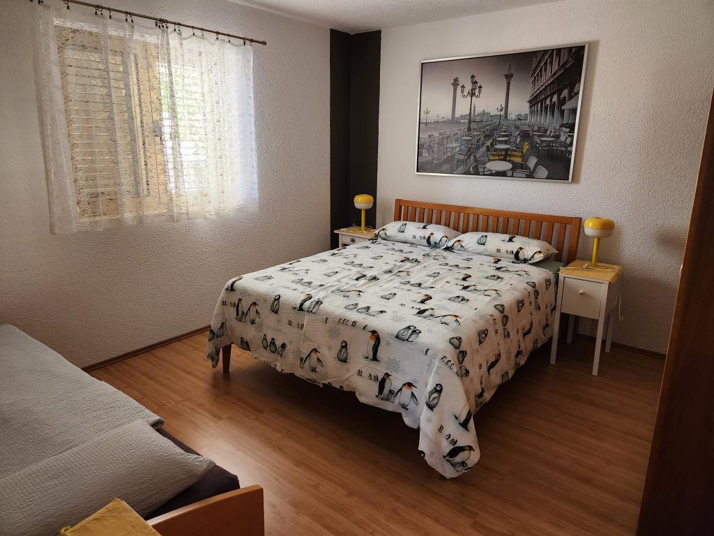 Cele două apartamente ale noastre sunt pentru grupuri, familii, prieteni etc. care se cunosc bine. Nu există turism de masă în orașul mic. Frumoasa priveliște la mare de pe terasă vă invită să vă relaxați, să vă odihniți și să vă reîncărcați bateriile. Proprietarii locuiesc în podul casei. Veți găsi locuri de parcare pe stradă, în proprietatea lor. Se pot parca până la trei mașini. Plaja poate fi accesată pe jos în aproximativ 10 minute. Locul are tot ce aveți nevoie pentru viața de zi cu zi. Din Karlobag puteți face excursii frumoase de o zi, cum ar fi Lacurile Plitvice, insulele Rab și Pag, orașul Zadar, cascadele Krka, peșterile Paklenica, drumeții în Velebit și multe altele. În sat puteți cumpăra tot ce este necesar pentru nevoile zilnice. Brutărie, supermarket, bancomat etc.