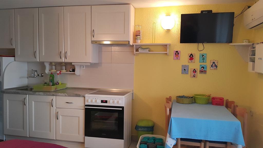 Apartamente foarte frumoase, curate și frumos mobilate, piscină convenabilă, astfel încât copiii se pot distra chiar și în timp ce adulții gătesc, mai ales dacă stați la parter. Marea cu greu putea fi mai aproape, ceea ce este cu adevărat minunat, și foarte curată, fără alge și meduze. Proprietar prietenos și corect. Recomand.