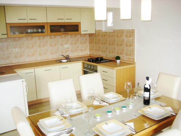 Apartament de Antton este destinat pentru un total de 8 persoane. și este situat într-o casă într-o zonă liniștită din Kastel Kambelovac și tocmai a fost renovat si mobilat confortabil. Se compune dintr-un living / bucatarie si sufragerie spatioasa, 3 dormitoare și 2 băi. Fiecare fereastră în camera de zi si sala de mese oferă o vedere minunată la mare și măslini care se găsesc în grădină. Vă puteți bucura de un grătar în grădină, care este înconjurată de măslini sau pe terasa cu vedere uimitoare. Apartamentul are trei dormitoare, o camera are doua paturi de o persoană și celelalte 2 dormitoare au fiecare un pat dublu. Cele doua bai sunt complet echipate, inclusiv o mașină de spălat. O baie are un duș, iar a doua baie are o cadă. Apartamentul ofera toate facilitatile care sunt necesare în timpul șederii (Wi-Fi gratuit, aer condiționat, TV prin cablu, masina de spalat vase, masina de spalat, uscator de par, fier și masă de călcat, prosoape, lenjerie de pat.). . Două loturi de parcare privată sunt disponibile în fața casei.