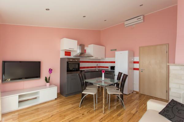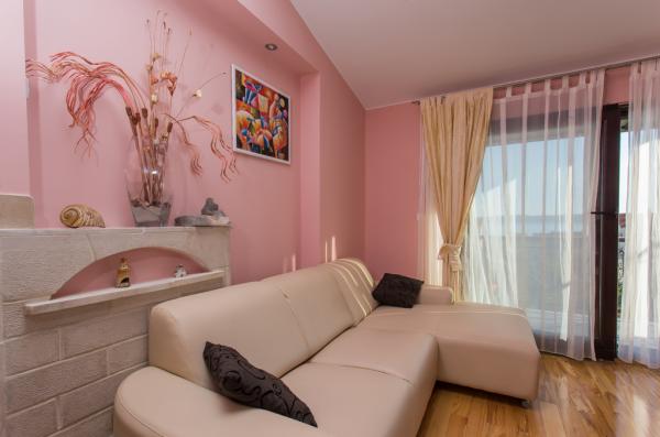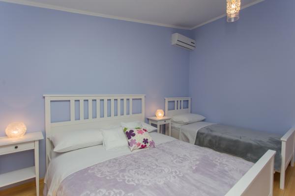 Complet mobilat apartament pentru 5 persoane într-o parte liniștită din Kaštel Kambelovac situat la doar 3 minute de mers pe jos de plajă și restaurante. Apartamentul este situat la etajul al doilea și oferă vedere la mare. Dimensiunea este 65m2, are două dormitoare, living, bucatarie, sala de mese si doua terase si o baie. Primul dormitor are un pat dublu mare și un pat de o persoană. Al doilea dormitor are un pat dublu pentru două persoane. Bucataria este complet echipata cu toate ustensilele și aparatele necesare (cuptor cu microunde, ceainic electric, blender manual, filtru de cafea.).