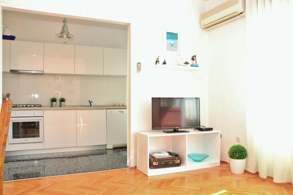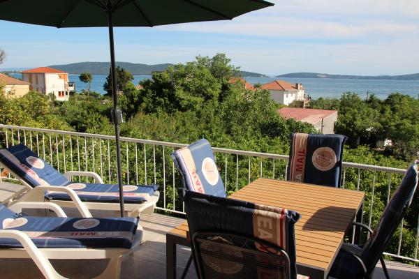 Apartament confortabil și complet mobilate cu două camere, cu vedere la mare. Situat într-o zonă liniștită din Kaštel Kambelovac, înconjurat de plante mediteraneene verzi smochine, cireșe, mandarine, viță de vie, măslini. Apartament (85 m), ocupă primul etaj al casei familiei, situata pe un teren de 4000m. Acesta are o terasă spațioasă, sud-oriented (30m), cu o vedere frumoasă și relaxantă a Bay. Este doar câteva minute de mers pe jos de la mare, plajă, parc, promenada, restaurante, magazine. Petreceti vacanta intr-un castel, un oraș cu șapte sate de la poalele pante de Kozjak. Simțiți durata de viață a dalmate. Treziți-vă la mirosul de mare și ciripitul păsărilor. Du-te în jurul valorii de ei fortificații, castele, biserici, cimitir, mers pe jos străzile sale. Gust autentic de produse alimentare locale superbe restaurante, la prețuri accesibile. Vizitați Split, Trogir și sunt situate la doar 10 km, credem că veți petrece o vacanță de neuitat.