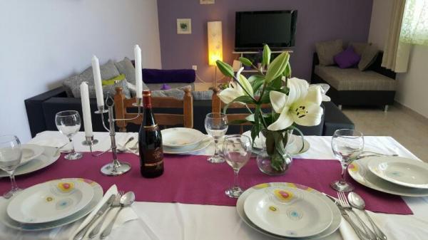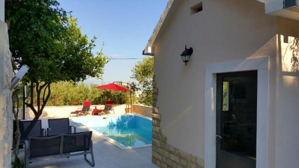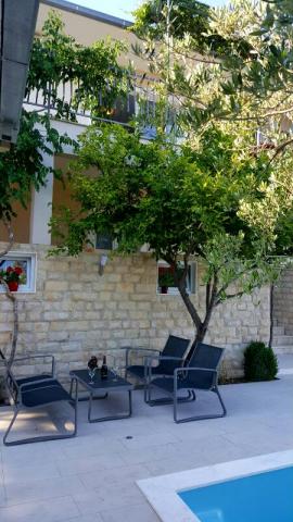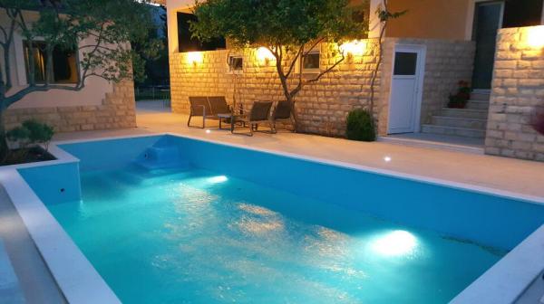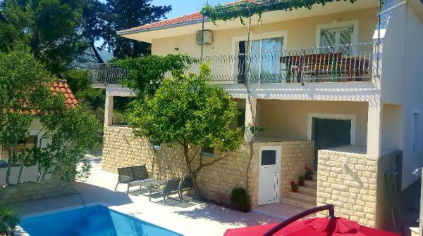 Complet mobilat, casa albastră cu un bazin de înot în zona Rudine, Kastel Novi. Facilitatea este situat la poalele muntelui Kozjak, înconjurat de verdeață, oferind o priveliste uluitoare asupra Golful Kastela, Split și insulele. O oaza de liniste perfecta pentru a petrece vacanța într-o casă prostarnoj confortabilă, piscină echipată în aer, un calm și nopți plăcute, și totuși aproape de toate atracțiile. Ne sunt situate la 5 km de aeroport, la 15 km de Split și la 8 km de Trogir. Timp de 5-10 minute cu mașina vă aflați pe plajele frumoase. Pentru iubitorii de natura, mersul pe jos și cu bicicleta de munte, in spatele casei sunt pante ale muntelui Kozjak, precum și frumoasa stațiune de gradina biblice, care este modul în care numele în sine spune un paradis pe pământ. Apartamentul spatios are 3 dormitoare, baie, WC, bucatarie, sala de mese si living, complet mobilat. 30m2 terasa, cu vederi și umbră uimitoare, perfecte pentru o viață de vară. Curtea are o multime de locuri pentru a juca, un spațiu mare de parcare pentru 4 masini, casa pentru un grătar și un măslin mare