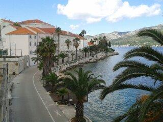 Acest frumos mobilat apartament pentru max. 6 persoane este situat de-a lungul coastei, cu o vedere frumoasă la mare și orașul vechi. Se compune din doua dormitoare, living, bucatarie, sala de mese, doua bai, terase si balcoane cu vedere la grădina de flori. Apartamentul este cu aer condiționat și are toate echipamentele necesare pentru un sejur confortabil.