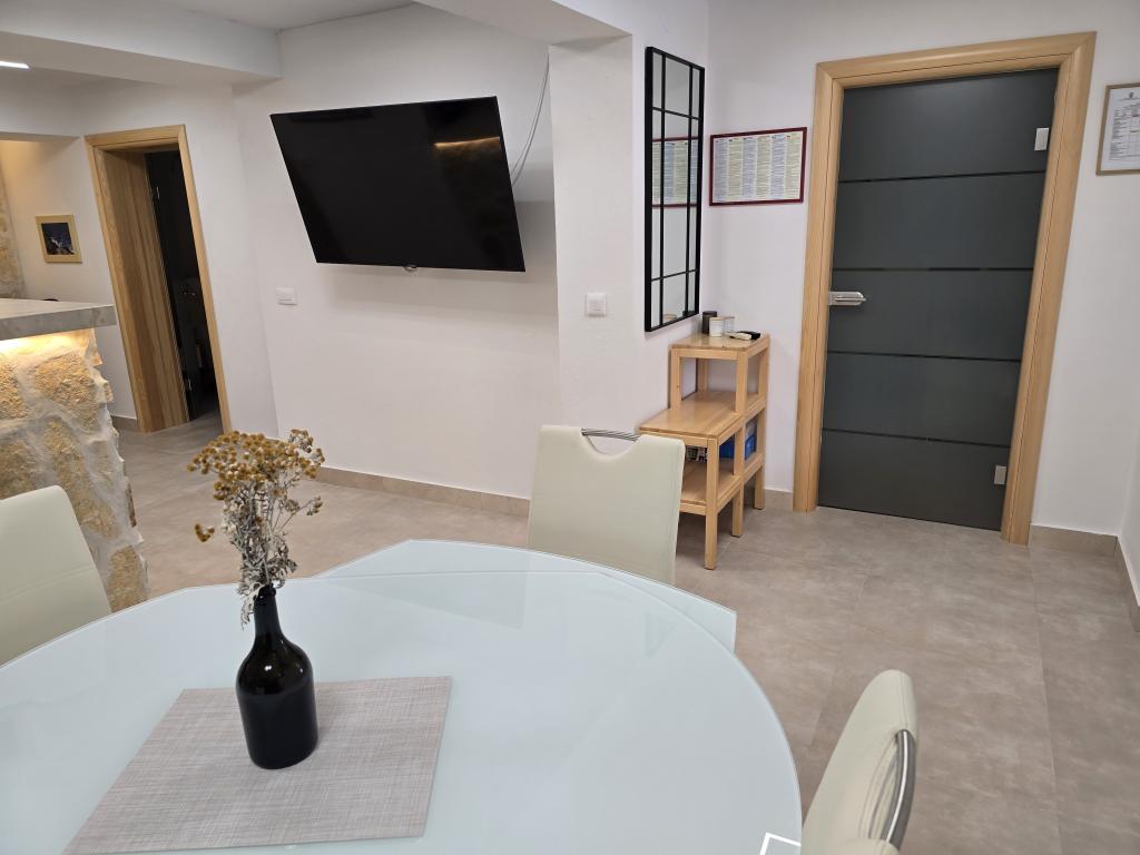 Piscina din imagini este destinată exclusiv oaspeților din apartamentul A4 ID: 759. Animalele de companie nu au voie să înoate în piscină. În acest caz, oaspetele plătește costul schimbării complete a apei și al curățării piscinei. Orice daună cauzată de oaspete în apartamente și camere se taxează. Ordinea și liniștea casei trebuie respectate, aspect evidențiat în toate zonele. Lenjeria de pat, prosoapele și prosoapele de bucătărie sunt furnizate de noi și nu este nevoie să le aduceți cu dumneavoastră. Curățenia apartamentelor și camerelor se percepe separat de prețul cazării (curățenia apartamentului ID 759 50 de euro; curățenia apartamentelor ID 760 și 761 40 de euro și a camerelor 30 de euro). Parcarea pentru mașini este asigurată doar pentru apartamente și doar pentru camere, dacă utilizatorii apartamentelor nu au vehicule, astfel încât utilizatorii camerelor pot folosi propria noastră parcare. Contactați-ne prin e-mail: marovicp@yahoo.com sau mobil/whats up: +38598244974