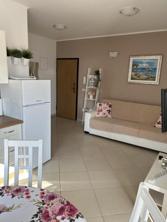 Apartament modern într-o clădire rezidențială liniștită, la etajul al treilea, cu o vedere frumoasă la mare. Apartamentul are un dormitor cu pat dublu, o canapea extensibilă, o bucătărie complet utilată și o terasă cu o vedere frumoasă la mare. Apartamentul se află la 50 m de mare și de plajă.