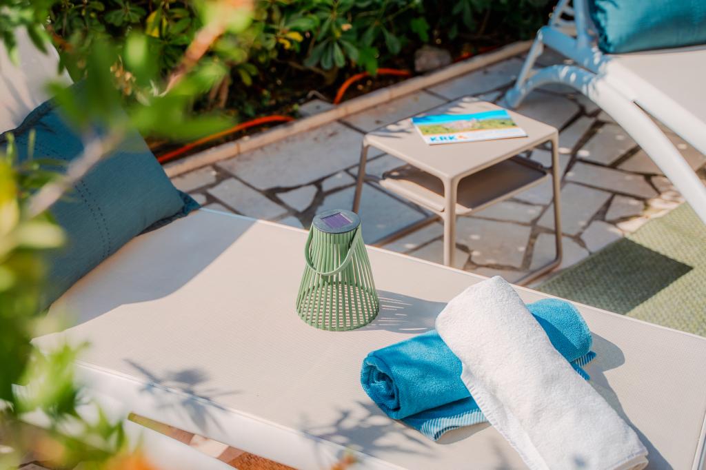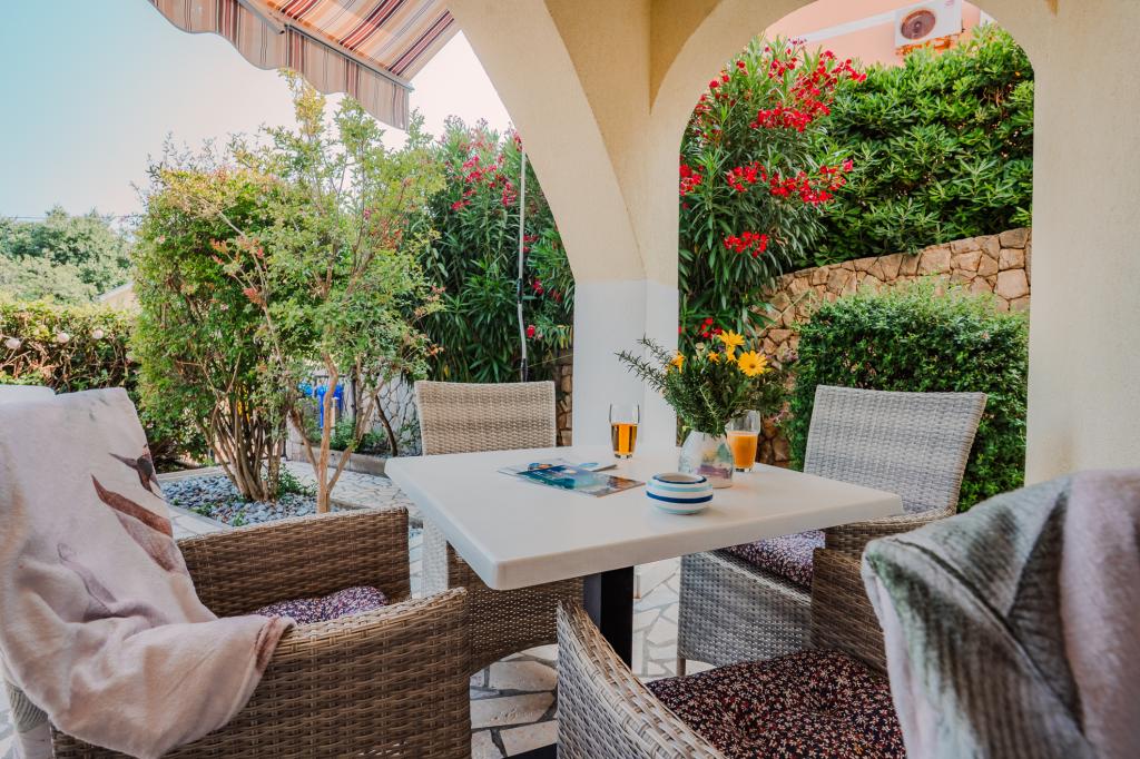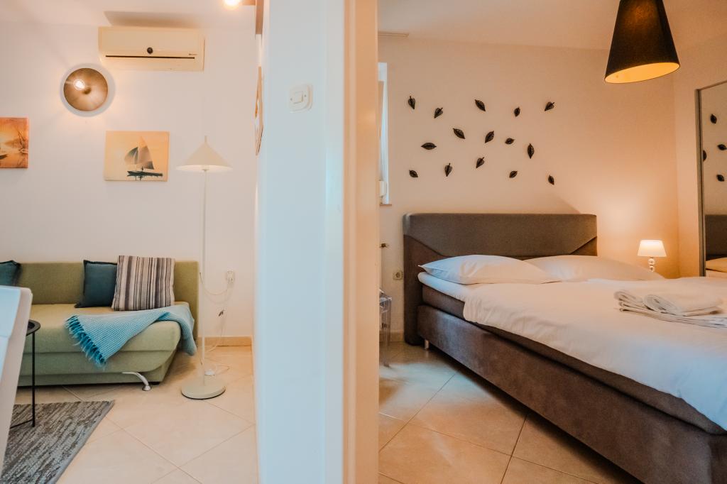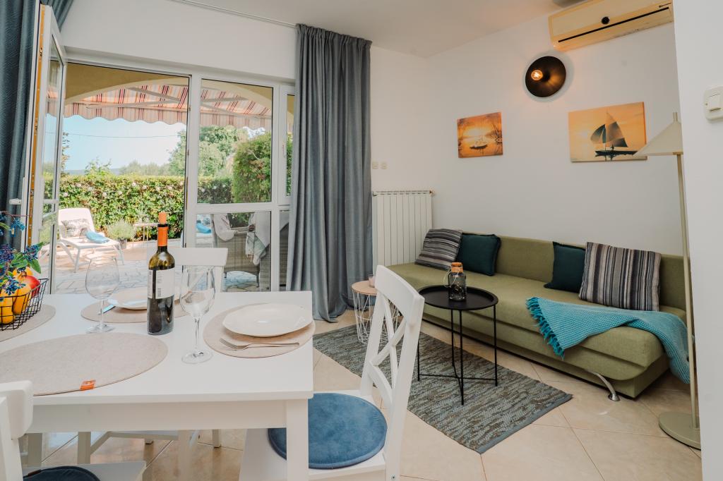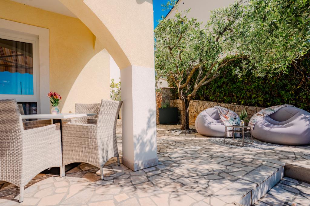 Patru apartamente decorate modern sunt situate în satul liniștit Čižić de pe insula Krk, ideale pentru o vacanță relaxantă în familie sau o vacanță romantică. Apartamentele 1 și 2 sunt situate la parter și oferă terase cu șezlonguri înconjurate de verdeață mediteraneană parfumată, în timp ce apartamentul 2 are suplimentar un jacuzzi încălzit și un colț de lounge la umbra plăcută a măslinilor. Apartamentele 3 și 4 de la primul etaj au un balcon cu vedere la mare. Toate apartamentele au aer condiționat, Wi-Fi gratuit, TV prin satelit, bucătărie utilată, baie, lenjerie de pat, prosoape și parcare gratuită. Animalele de companie sunt binevenite. Plaja este la 500 m distanță.