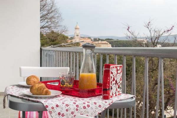 Apartament Brand nou și modern, în centrul orașului, la etajul al doilea al clădirii, la doar 20 de metri de mare. Balconul oferă o priveliște superbă a Catedralei Krk, promenada de munte-port. Internet și parcare gratuită. Restaurante, magazine, piața de pește, de piață, banca, farmacie și stație de gaz se află la doar 100 de metri distanță, iar plaja la 200 de metri.