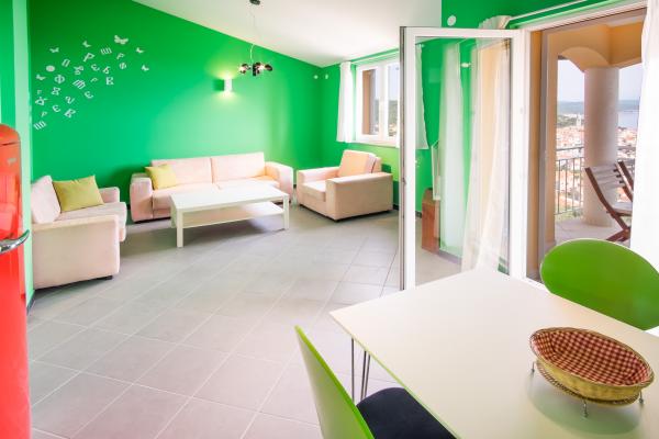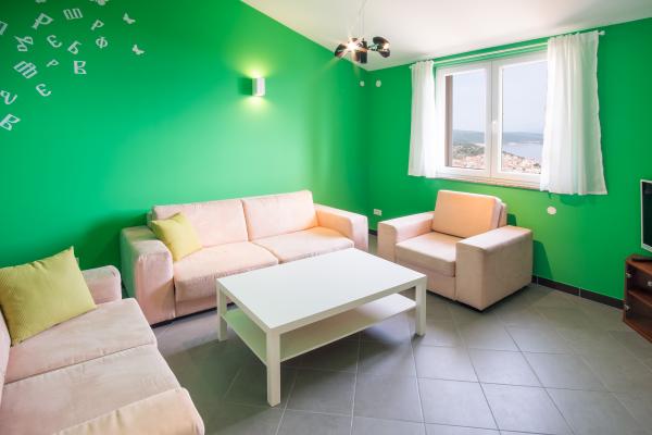 Apartamentul este situat la etajul 1, situat intr-o locație liniștită atractiv, are o terasă acoperită cu o vedere frumoasă la mare și orașul vechi. Doar 10 min. de mers pe jos de centrul și plajele din apropiere pentru gustul tuturor. Noi va vom ajuta cu plăcere consilierea în cazul în care pentru a merge pe excursie, cina sau merg afară. Așteptăm cu nerăbdare să te văd!