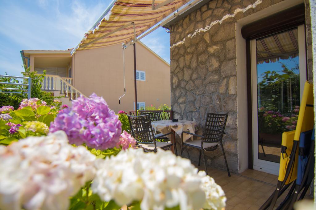 Casa noastră cu apartamente este situată într-o zonă liniștită din Krk. Apartamentele sunt situate la parter, una lângă alta. Sunt echipate modern. Fiecare are propria terasă, înconjurată de flori de hortensie. , cu vedere la grădină. Parcarea este în curte, acoperită cu copertină. Plaja PLAV este la 2-3 minute de mers pe jos de casa noastră. Proprietarii locuiesc la primul etaj al casei.