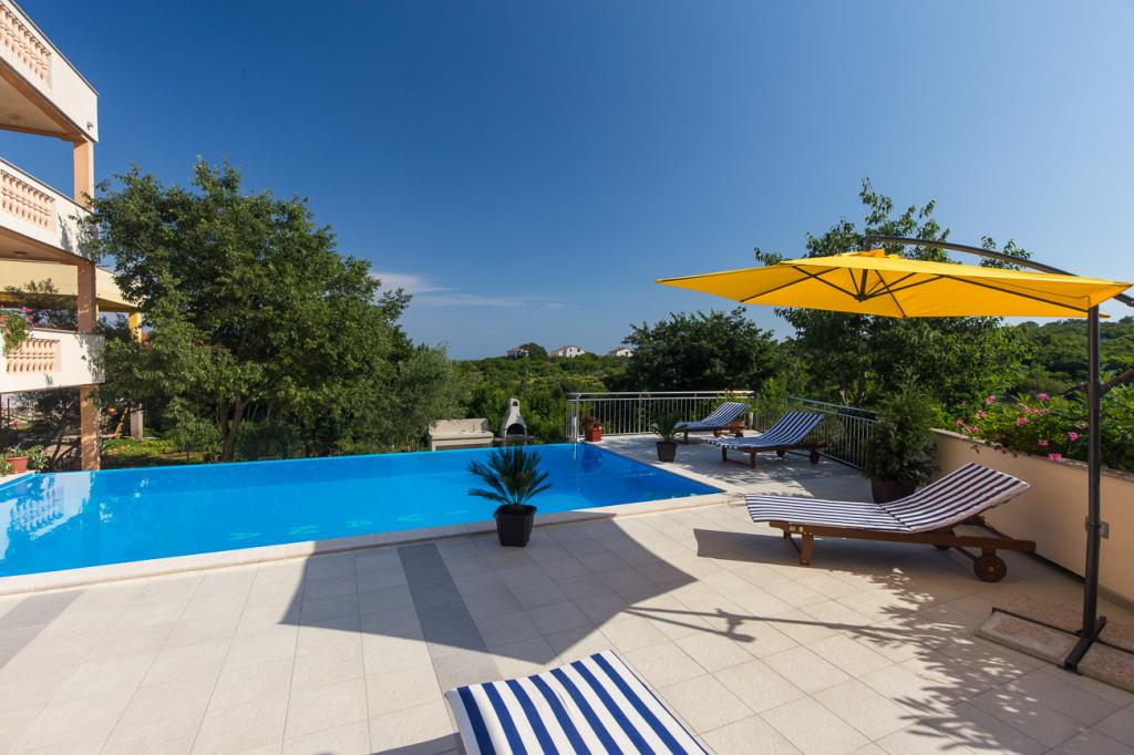 Această frumoasă casă de apartamente oferă combinația perfectă de confort, intimitate și relaxare. În curtea spațioasă se află o piscină, ideală pentru a vă bucura de zilele calde de vară, precum și o grădină amenajată cu grătar, perfectă pentru reuniuni de familie și întâlniri de seară cu prietenii. Casa este decorată modern și are 4 apartamente și o garsonieră. Apartamentele sunt dotate funcțional, cu un living spațios, dormitoare confortabile și o bucătărie complet utilată. Locația liniștită și curtea împrejmuită asigură intimitate completă, făcând din această casă un loc ideal pentru vacanță, locuit sau închiriere turistică. O combinație de natură, confort și lux - locul perfect pentru a evada din viața de zi cu zi.