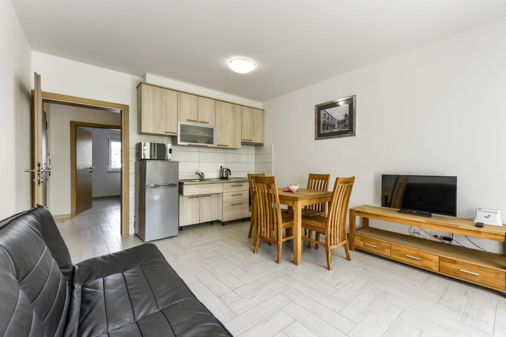 Complexul de apartamente Batimat are 21 de apartamente, unități de cazare care sunt împărțite în mari (5-7 persoane) și mici (2-4 persoane). Există, de asemenea, un apartament pentru persoane cu dizabilități (2 2). Apartamentele sunt destinate persoanelor single, precum și cuplurilor, prietenilor, familiilor cu copii. Un interior nou, echipat luxos, vă va încânta. Complexul de apartamente Batimat este situat într-un mic sat pescăresc Ljubac, la 17 kilometri vest de Zadar și la 30 kilometri est de insulă - orașul Pag. Apartamentele mari (5 2) se întind pe două etaje. La primul etaj există o cameră de zi, bucătărie cu sufragerie, baie și terasă. La etajul al doilea sunt trei dormitoare și o baie. Apartamentele mici (2 2) sunt situate la parter și includ un living cu bucătărie și sufragerie, dormitor, baie și terasă. Distanța de la mare este de 30m, iar de frumoasa plajă cu nisip 150m.