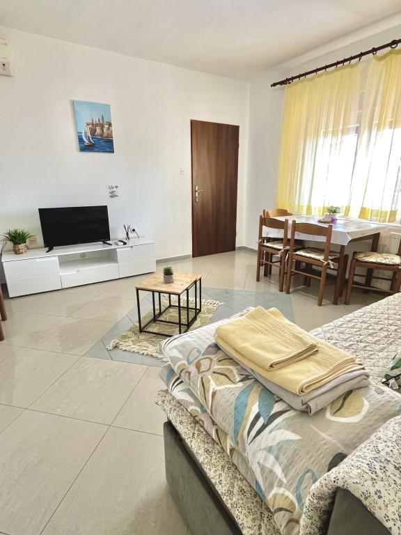 Într-o locație liniștită din Lopar se află Apartamentele Azik, ideale pentru odihnă și relaxare. În imediata vecinătate se află faimoasele plaje - Rajska plaža, Livačina, Stolac (FKK) și Sahara, iar restaurante, o brutărie și magazine se află la doar câteva minute de mers pe jos. Toate apartamentele sunt complet echipate pentru un sejur confortabil - lenjerie curată, prosoape și toate echipamentele necesare sunt disponibile. Fiecare apartament are o vedere frumoasă la mare, ceea ce face ca vacanța dumneavoastră să fie specială.