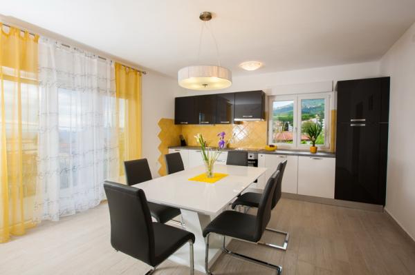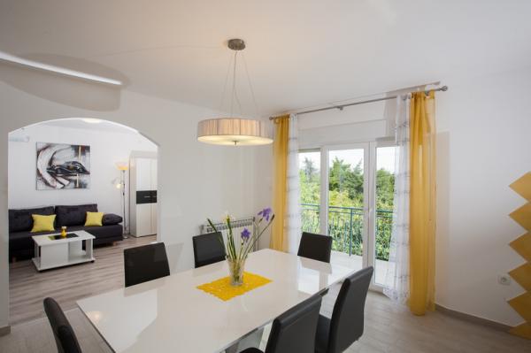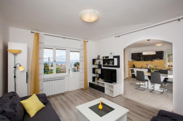 Apartament confortabil, modern, într-o parte liniștită din Lovran, înconjurat de o grădină mare, ideală pentru o vacanță de familie. Se compune din trei dormitoare duble si un living spatios, bucatarie si doua bai. Ea are un balcon mare cu vedere la mare. Renovat din 2014. an. Facilitatea este situat la 5 minute de mers pe jos de cea mai apropiată plajă și la 10 minute de centrul orasului.