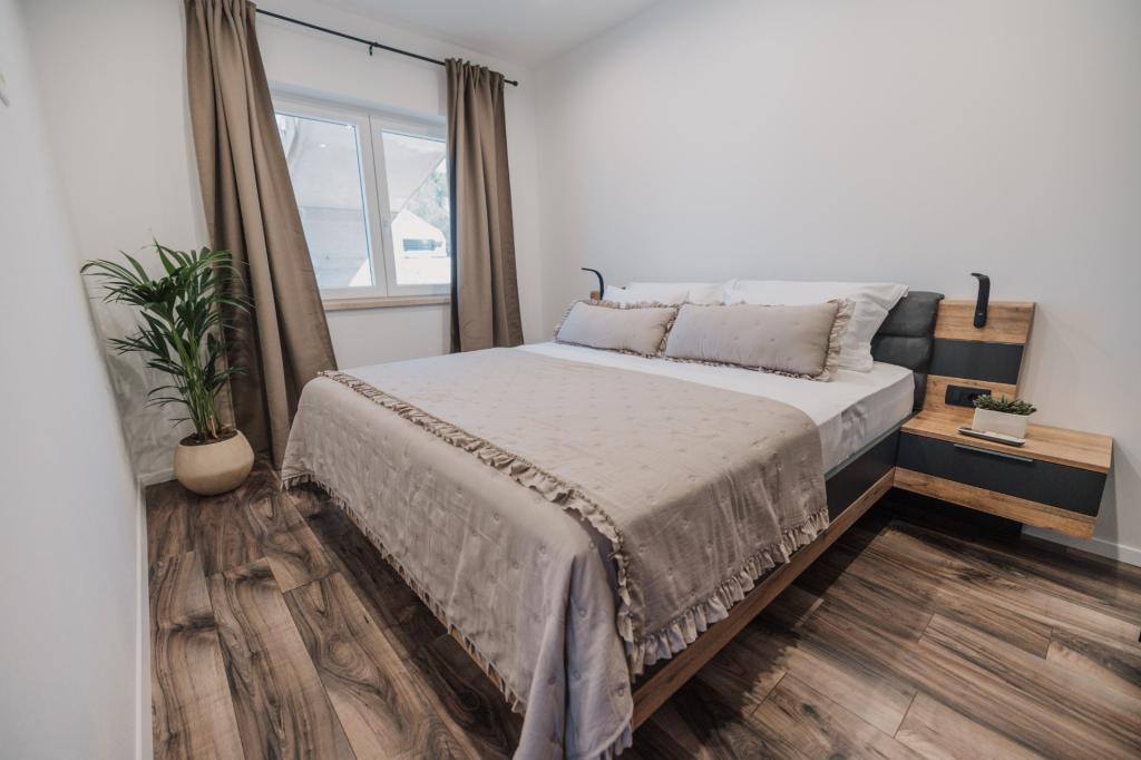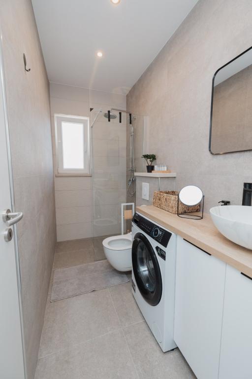 Un apartament recent renovat și modern utilat este de închiriat în Lumbarda, pe insula Korčula, situat în atmosfera autentică a unei plantații de măslini spațioase, care garantează oaspeților intimitate și liniște absolută. Apartamentul acoperă 75 de metri pătrați de spațiu interior, cu două dormitoare și două toalete, iar un accent deosebit este pus pe exterior, care include o terasă mare de 35 de metri pătrați și o grădină de 100 de metri pătrați, ideală pentru relaxare în singurătate. Interiorul este complet echipat pentru un sejur confortabil pentru patru persoane, inclusiv o mașină de spălat vase în bucătărie, o mașină de spălat rufe în baie, MaxTV și internet 5G rapid, iar pentru familiile cu copii mici, un pătuț este disponibil la cerere. Locația este o combinație perfectă între intimitate și apropierea de toate facilitățile; primul golf de înot este la doar 200 de metri distanță, centrul orașului este la 800 de metri distanță, în timp ce faimoasele plaje mari cu nisip fin sunt la aproximativ 2 kilometri distanță. Oaspeții au la dispoziție parcare privată în cadrul clădirii.