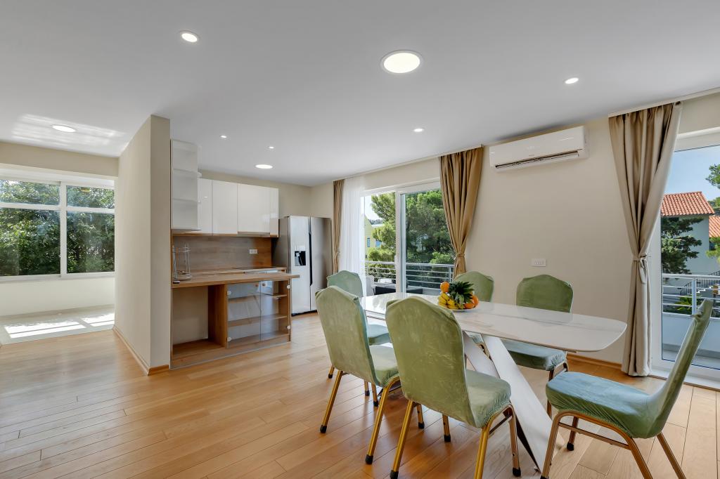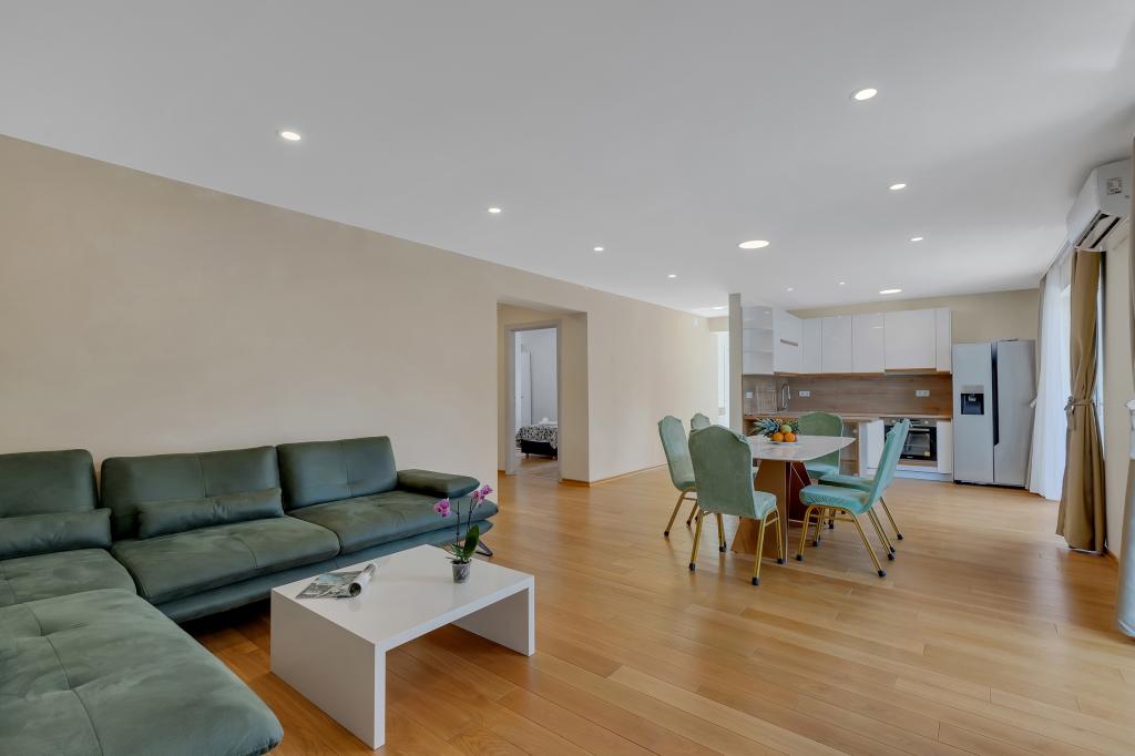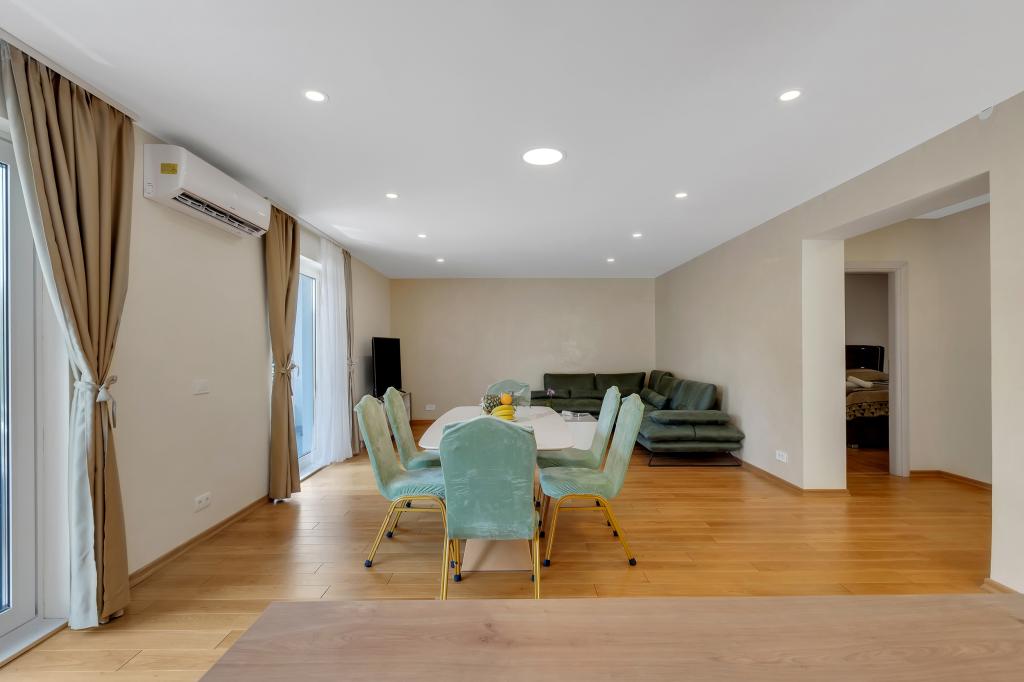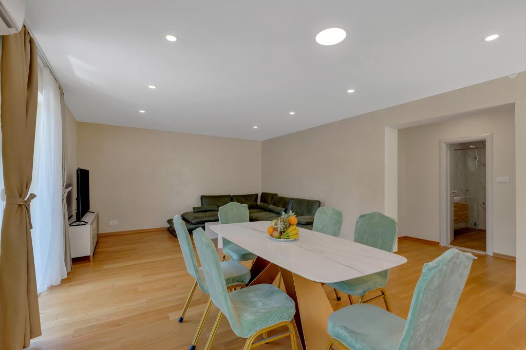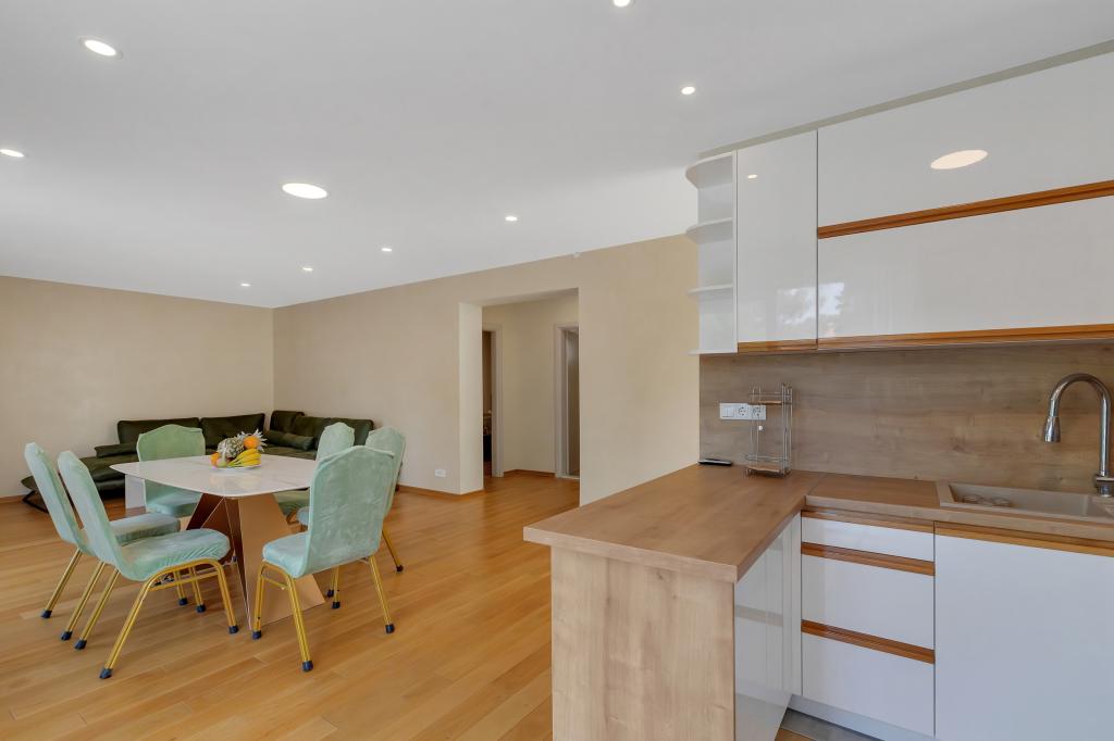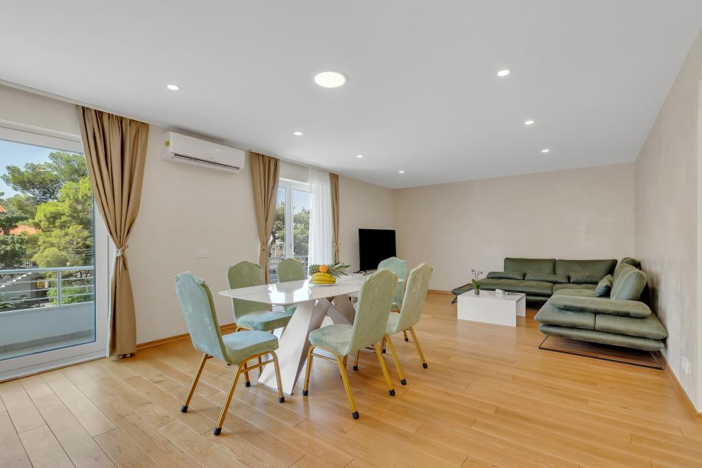 Apartament/apartament complet utilat cu doua camere (dublu, pat 180x200, iar celalalt cu 2x paturi separate care se pot conecta daca se doreste), 2 bai, living mare cu bucatarie (impreuna 40m2) Apartamentul are tot ce ai nevoie pentru o perioada lunga de timp. și sejur confortabil și este situat în centrul orașului Makarska