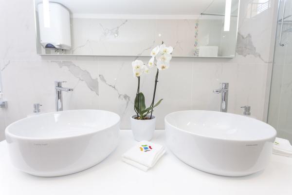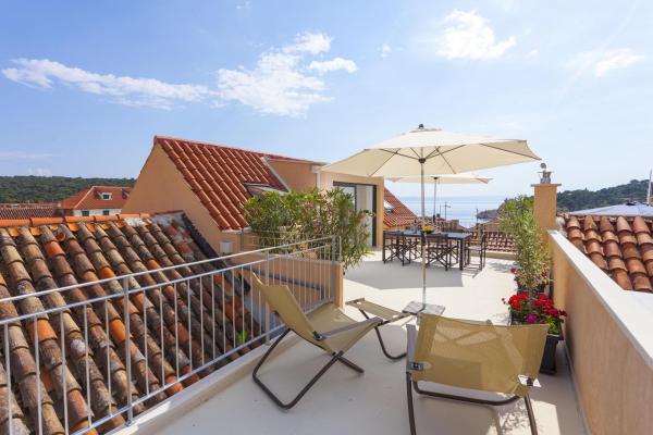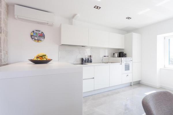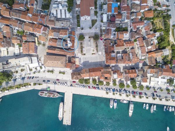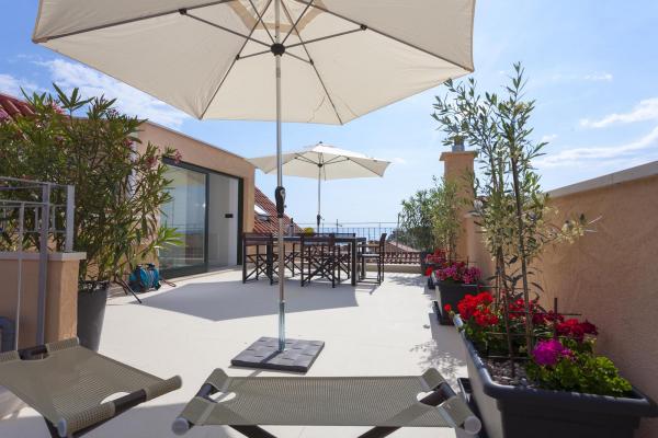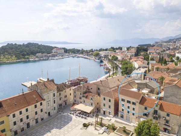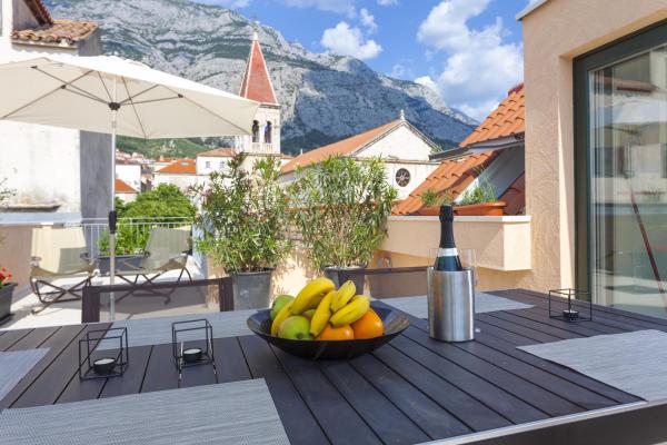 Apartament duplex nou, modern și luxos, în centrul orașului Makarska. Acesta este situat în piața principală, la numai 50 de metri de malul mării, cele mai bune restaurante din oraș, barurile de vinuri și catedrala Sf. Mark. Apartamentul are o terasă frumoasă cu vedere la portul orașului. Apartamentul este complet aer condiționat, internet wireless este disponibil în toate camerele și fiecare cameră, precum și livingul este dotat cu TV LCD. Bucătăria este complet echipată cu toate aparatele, inclusiv mașinile de spălat vase, cuptoarele cu microunde, cuptorul, filtrul de cafea etc. Două băi sunt disponibile cu prosoape și articole de toaletă. Parcare privată este la aproximativ 100 m distanță de apartament și percepe 16 € / zi.