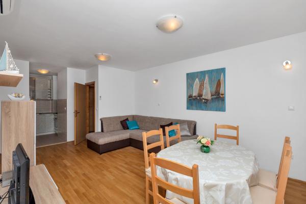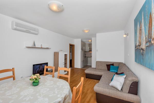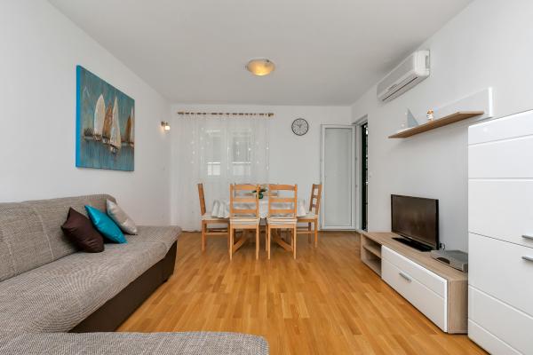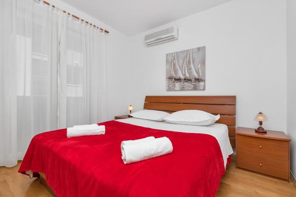 Vă oferim un apartament confortabil și modern echipat în centrul orașului Makarska, departe de plajă, la numai 50m. Apartamentul este compus din doua dormitoare, baie, bucatarie, living si balcon. Toate camerele sunt dotate cu aer condiționat, televizor, internet gratuit. Parcarea este asigurată. Plaja frumoasă, lungă, înconjurată de pini, se află în fața casei. În apropiere se află restaurante, loc de joacă pentru copii, farmacie, magazine ... Rezervările necesită o plată în avans de 20%. Pentru toate întrebările, sunt la dispoziția dumneavoastră. Cu respect, Katarina Birgmajer