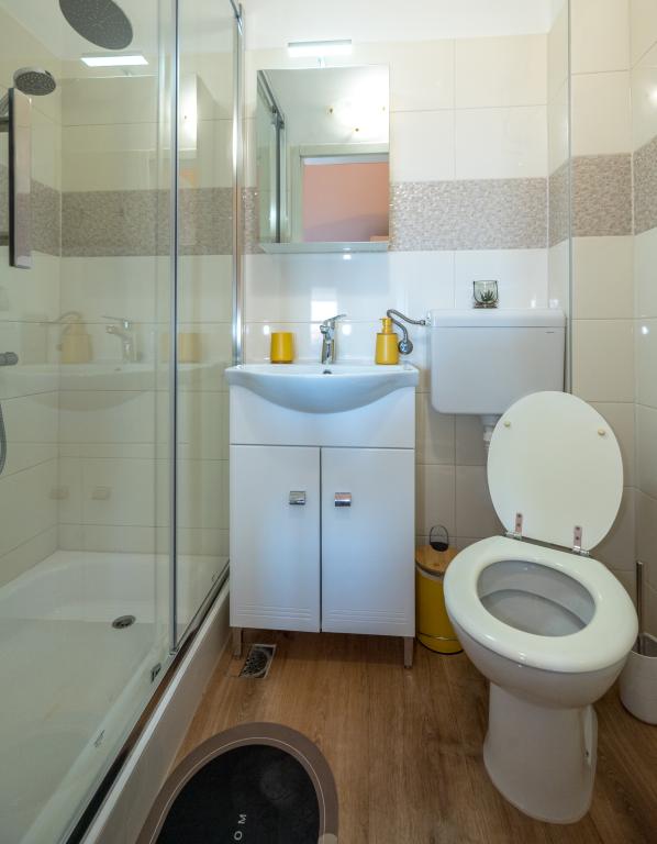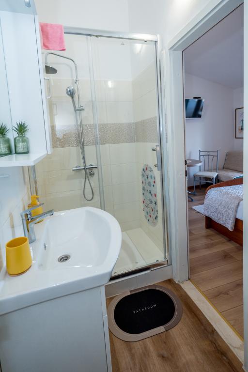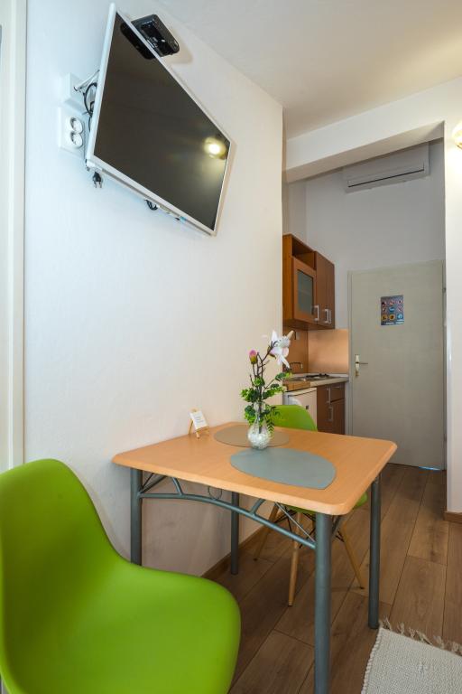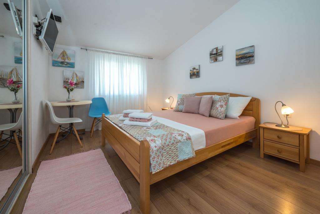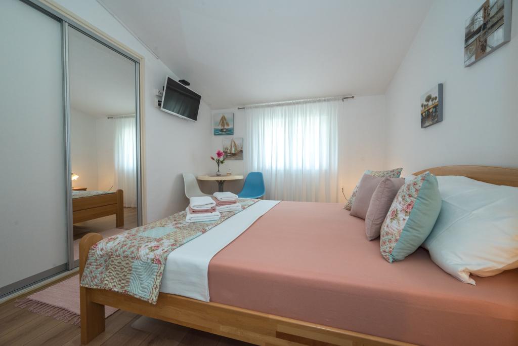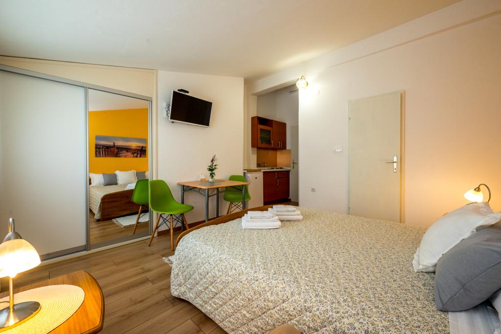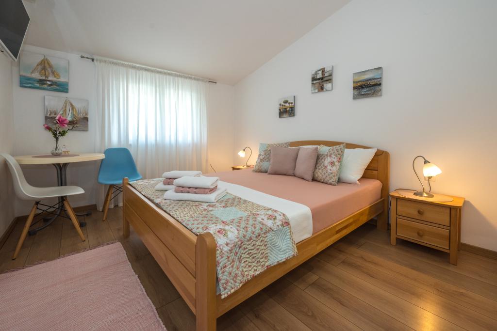 Camerele sunt îngrijite, moderne, bine echipate și sunt situate la etajul al doilea al unei case de familie, în fața căreia se află o curte pentru parcarea mașinilor oaspeților. Casa în sine este situată într-o zonă frumoasă, foarte turistică, din Makarska, la aproximativ 90 m de plaja orașului și la 200 m de care se află 8 hoteluri. Gazda are mulți ani de experiență în industria turismului. La o distanță de 500 m de casă se află un centru de tenis și un parc acvatic, la 800 m principalul parc urban al orașului cu facilități sportive și recreative, iar la 1000 m începutul centrului orașului. La 100 m se află un centru de scufundări, iar la aceeași distanță se află hotelul Biokovka, care oferă piscine interioare, saune, săli de sport, terapie fizică și masaje. Printre atracțiile din apropiere se numără Muzeul Scoicilor din oraș, Parcul Natural Biokovo cu faimosul Skywalk, Lacurile Roșii și Albastre din Imotski, excursii turistice cu barca către insulă și orașul Korčula și faimoasa plajă Zlatni rat de pe insula Brač.