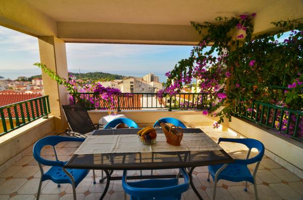 Apartamentele mobilate confortabil, cu terase panoramice cu vedere la mare și la oraș. De vedere se bazează. Gazde primitoare.