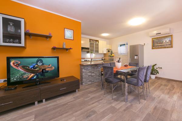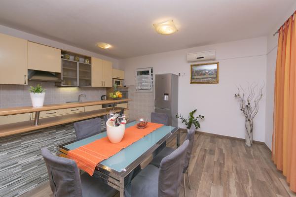 Bine ați venit la apartamentul nostru Roso, care este format din trei dormitoare, doua bai, living, bucatarie si sufragerie. Apartamentul este potrivit pentru 2 sau 3 familii sau pentru 6 adulți și 2 copii, sau pentru 8 persoane, în orice combinație. Acesta este conceput pentru socializare, mai ales pe terasa unde vă puteți bucura de soare, aer curat, de băut și de râs. Oricine vine aici o dată, întotdeauna se întoarce! Apartament Rosa este situat într-o zonă relativ nouă, cartier liniștit, situat într-o locație excelentă, destul de departe (nu va auzi de trafic) și destul de aproape de drumul principal de la care puteți merge în toate direcțiile. Plimbarea pe plajă să vină prin 15 minute pe străzile interesante, care ajunge mai departe să știe orașul nostru, puteți merge, de asemenea, în jos și cu mașina. În imediata apropiere există un magazin în cazul în care vă puteți acoperi alimentele necesare și să bea. Ne place să lucreze cu oamenii. Makarska este un oraș turistic, și toți trăiesc din turism, în conformitate cu ceea ce vom încerca să ofere o pauză în casa noastră în cel mai bun mod posibil și să furnizeze toate informa