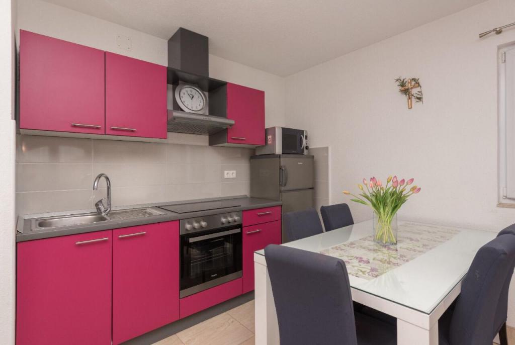 Casă recent decorată cu cinci apartamente. Toate apartamentele sunt dotate cu aer condiționat, Wi-Fi gratuit, parcarea este oferită. Posibilitatea grătarului. În apropiere se află: 2 cafenele, farmacie, 2 supermarketuri, birou de turism, casă de pariuri, bancomat. Să ne facem vacanța în Makarska mai frumoasă. Familia Roso