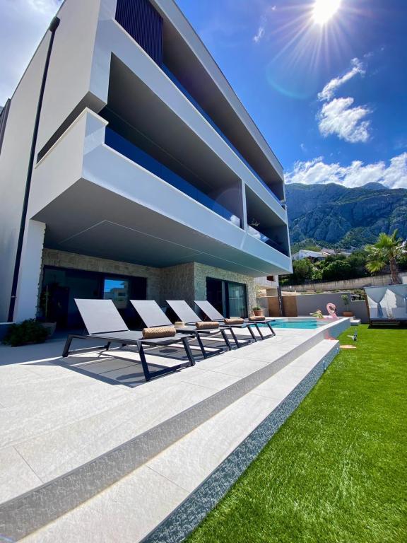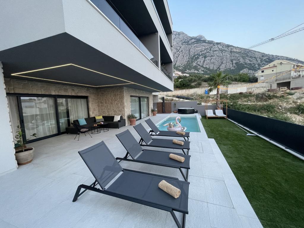 Villa 5 oferă cazare în Makarska, cu WiFi gratuit și vedere la mare, precum și o piscină în aer liber, o grădină și un lounge comun. Acest apartament oferă parcare privată gratuită și o bucătărie comună. Apartamentul cu aer condiționat este format din 4 dormitoare, un living, o bucătărie complet utilată cu frigider și aparat de cafea, precum și 3 băi cu duș și articole de toaletă gratuite. Prosoapele și lenjeria de pat sunt incluse în acest apartament. Villa 5 oferă cazare de 4 stele, cu cadă cu hidromasaj și terasă.