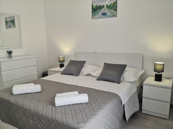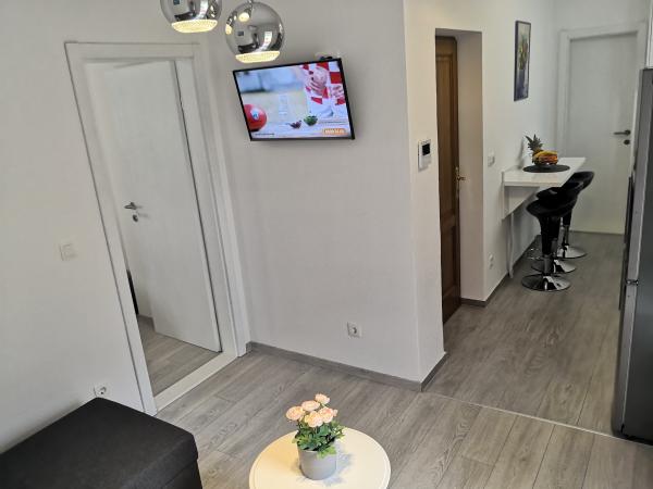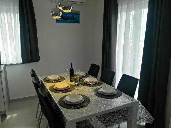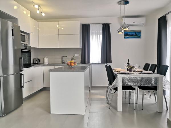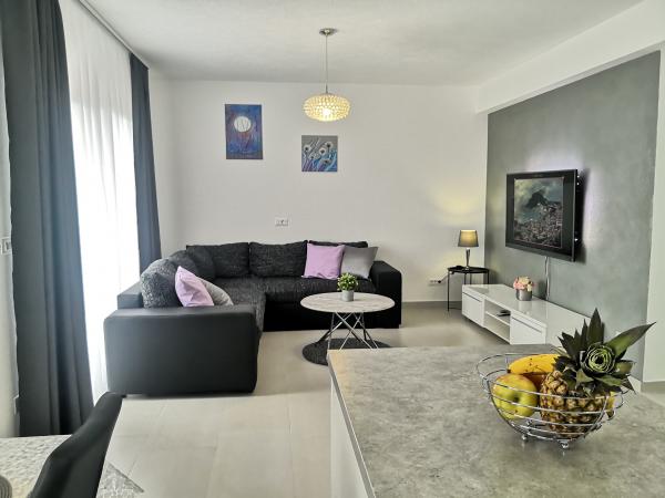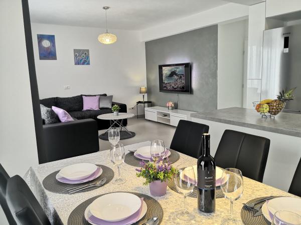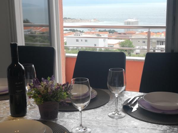 Apartament mobilat nou și mobilat luxos, situat într-o zonă liniștită din Makarska, cu o priveliște frumoasă spre Makarska, mare, insule și munte Biokovo. Apartamentul include tot ce aveți nevoie pentru o vacanță odihnitoare. Aer condiționat, bucătărie, mașină de spălat vase, mașină de spălat, internet, tv, parcare și posibilitatea de a folosi un grătar în aer liber cu masă mare în curte și o grădină chiar mai frumoasă.