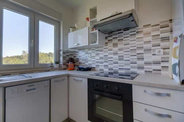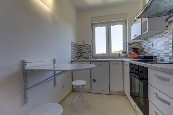 Apartament nou, modern, este situat între două golfuri, Valdarke și Sf. Martin, care este, de asemenea, cea mai veche parte a orașului. Este un cartier foarte liniștit și foarte aproape de centru, 800m. Plaja care se ajunge printr-un culoar de 100m pavate. Desigur, în imediata apropiere există alte plaje, puteți ajunge pe jos sau scurtă călătorie cu mașina. Apartamentul este situat la primul etaj și constă dintr-un dormitor, bucatarie si baie in fata copilului masa de schimbare și există un pat de copii. Bucataria este modern echipata cu mașină de spălat vase, frigider și congelator, cuptor, filtru de cafea și toate ustensilele de bucătărie necesare. Baie cu cabină de duș și mașină de spălat. Camera este dotată cu un tabel cu două fotolii să se relaxeze și o canapea care se extinde într-un pat 150x200cm și un dulap. Este posibil să se aranjeze un pat suplimentar. Camera este dotată cu aer condiționat și dotate cu Internet TV și Wi-Fi. După acordul anterior permis animale de companie ordonat de plumb.