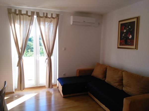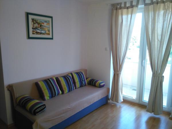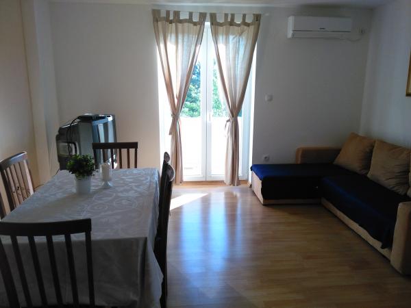 Nikolina apartamente sunt situate într-o zonă liniștită din Malinska, într-o stradă liniștită și mort-end înconjurat de natură. In apropiere este un restaurant care oferă mâncare tradițională (350m); magazin este de 400 m, plaja 850 m. Toate apartamentele includ o bucătărie echipată cu vase și ustensile pentru gătit și frigider, living cu TV prin satelit, aer condiționat și o rețea Wi-Fi gratuit de viață. In apropiere sunt satele vechi tradiționale, alei, trasee pentru biciclete, muzee și multe alte atracții naturale și culturale. Aeroportul Rijeka este la 15 km (Krk), stație de autobuz 350 m (Bogovići), o stație de cale ferată 45 km (Rijeka).