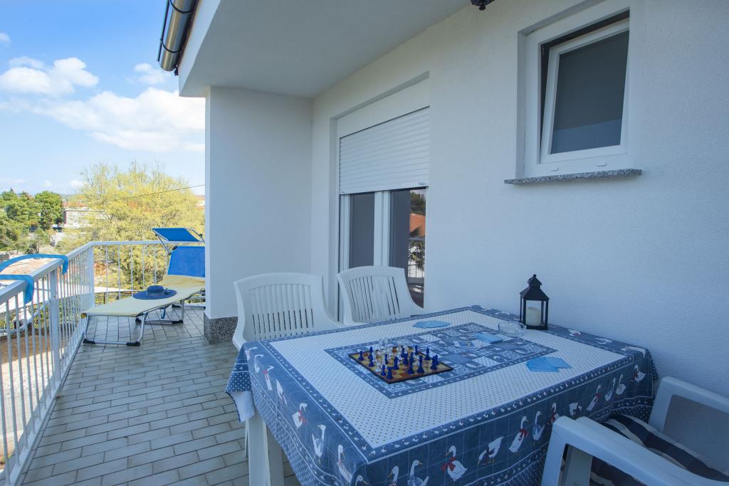 Casa de vacanta recent renovata. Apartament duplex cu patru paturi complet echipat, cu parcare privată și grădină. Se compune din terasa, balcon, bucatarie cu sufragerie, baie/toaleta la parter, si doua dormitoare cu pat matrimonial, toaleta suplimentara si o terasa mare utilata la etajul 1. Casa este situată la capătul unui cul-de-sac care nu este aglomerat. Lângă casă este o parcare. iar in fata o gradina cu gratar, dus exterior. Din casă există o potecă către plajă, la doar 3 minute de mers pe jos. Dacă veți continua de-a lungul promenadei, veți ajunge în centrul orașului în zece minute, trecând pe lângă numeroase restaurante și cafenele, dar și un loc de joacă pentru copii, unde puteți face o pauză cu băuturi răcoritoare. Seara, Malinska și locurile din jur de pe insulă oferă concerte, expoziții și alte facilități pentru toate vârstele