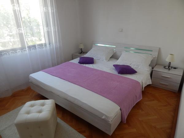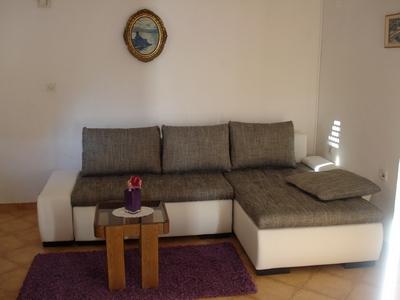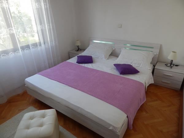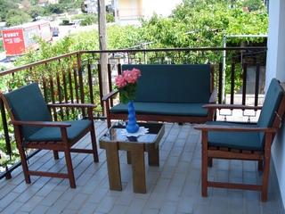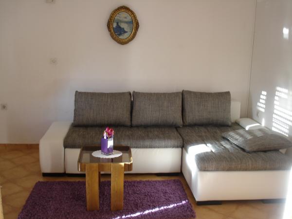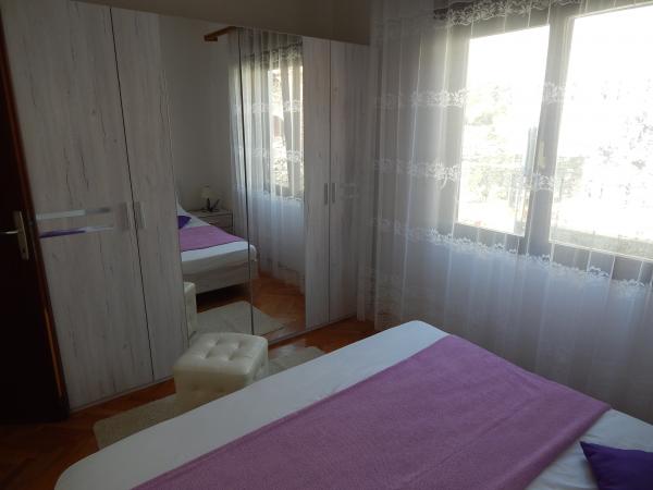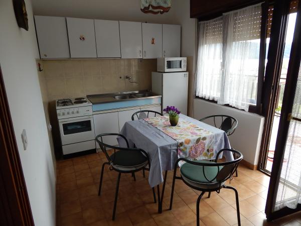 Apartamentul este la etajul de sus al întregii casei, 60m2, cu aer condiționat, cu vedere la mare. Acesta are 2 dormitoare, living cu o canapea extensibilă, bucătărie (aragaz, frigider, tacâmuri și gătit), baie, terasa 20m2 mari, cu vedere la mare, parcare gratuită, grătar, mașină de spălat.
